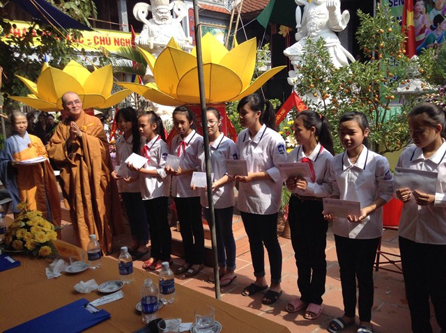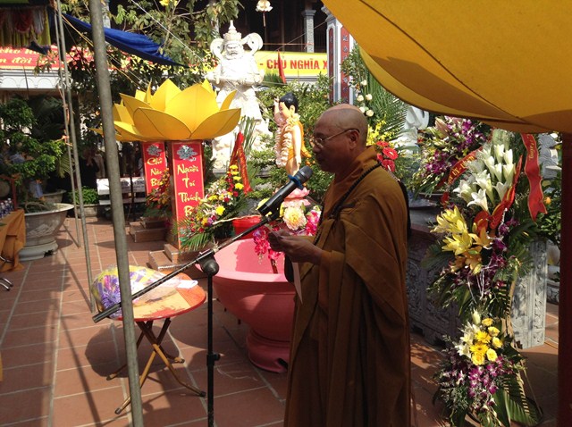 Tiếp đó, Đại Đức Thích Quảng Minh thay mặt cho BTS GHPGVN huyện Tiên Lãng lên tuyên đọc Diễn văn khai mạc Đại lễ Phật đản PL. 2560 – DL. 2016 của Hòa thượng Thích Thiện Nhơn – Chủ tịch HĐTS TƯ GHPGVN.
