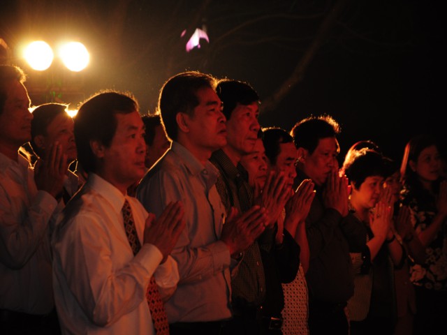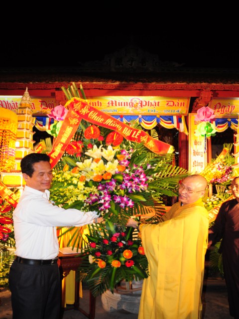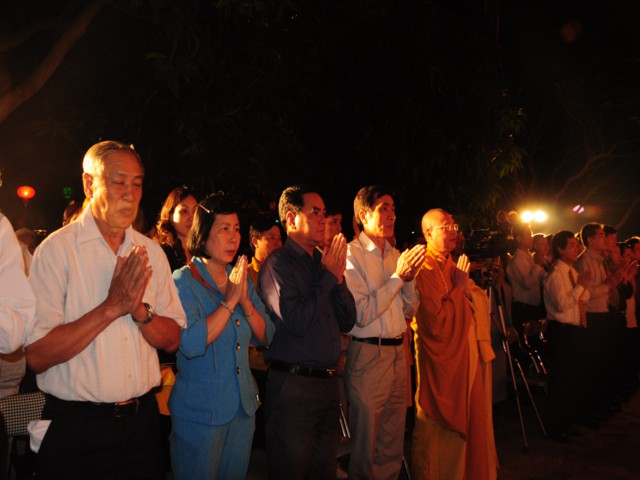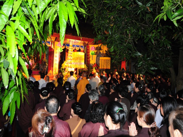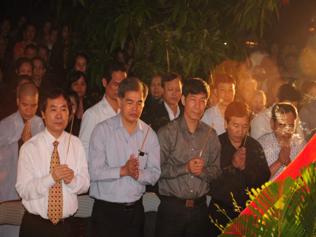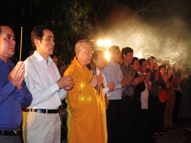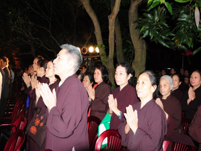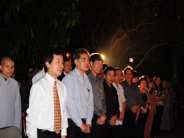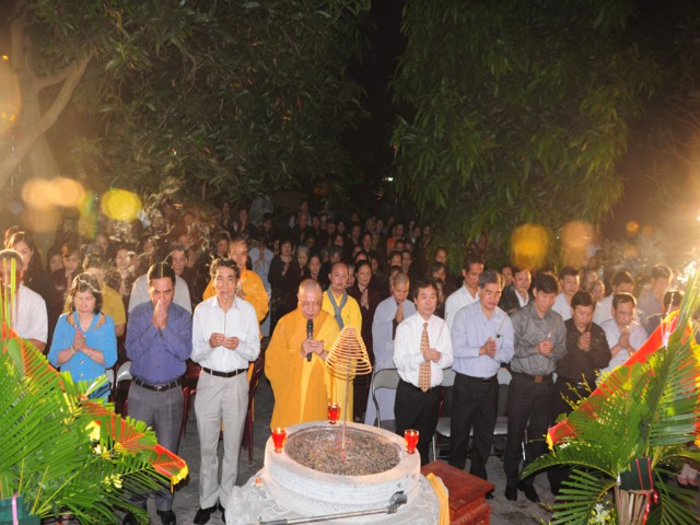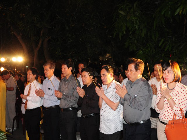 Trước khi kết thúc buổi lễ, Chư tôn đức Tăng Ni, các cấp chính quyền của thành phố, quận Lê Chân, phường Dư Hàng Kênh và đông đảo các Phật tử đã cử hành nghi lễ niêm hương, bạch Phật cầu nguyện Quốc thái dân an, âm siêu, dương thái.