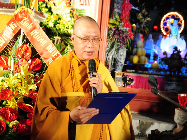 Sau khi cung tuyên Thông điệp kính mừng Phật đản của đức Pháp chủ GHPGVN, ĐĐ. Thích Giác Sơn đã tuyên đọc Diễn văn khai mạc kính mừng Phật đản PL. 2558.