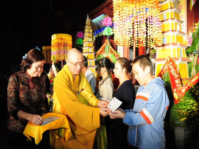Nhân dịp này, TT. Thích Thanh Giác thay mặt cho BTS GHPGVN Tp. Hải Phòng đã trao 40 suất quà cho các gia đình có hoàn cảnh khó khăn, các cụ già neo đơn, các thương bệnh binh, người tàn tật, trẻ em mồ côi, trẻ em nghèo trên địa bàn phường Dư Hàng Kênh, quận Lê Chân.