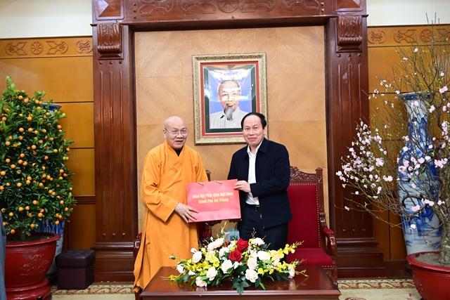 Nhân dịp chuẩn bị đón Tết cổ truyền năm Ất Tỵ – 2025, sáng ngày 23/01/2025 (nhằm ngày 24 tháng Chạp năm Ất Tỵ), Ban Trị sự GHPGVN thành phố Hải Phòng do Hoà thượng Thích Quảng Tùng – Phó Chủ tịch HĐTS, Trưởng ban Từ thiện – xã hội Trung ương GHPGVN, Trưởng BTS GHPGVN thành phố Hải Phòng làm trưởng đoàn đã đến thăm, chúc tết lãnh đạo Thành ủy, UBND, UB MTTQVN, Ban Tôn giáo Sở Nội vụ, Ban Dân vận Thành ủy, Sở Công an và phòng PA 02 Công an thành phố Hải Phòng.