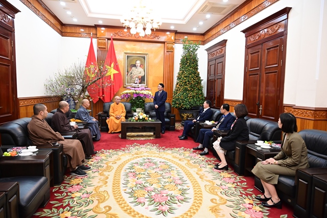 Tại UBND thành phố, ông Lê Khắc Nam – Phó Chủ tịch UBND thành phố đã thông tin tới phái đoàn Ban trị sự tình hình kinh tế, chính trị, xã hội, an ninh – trật tự của thành phố trong năm qua. Đặc biệt, năm 2024, GIDP của thành phố tăng trưởng hơn 14%. Như vậy, 10 năm liên tục, Hải Phòng đạt mức tăng trưởng 2 con số (là địa phương duy nhất đạt mức độ tăng trưởng GIDP 2 con số trong 10 năm liên tục), thu ngân sách đạt trên 110 ngàn tỷ đồng, trong đó thu nội địa là trên 50 ngàn tỷ đồng; đầu tư nước ngoài 4,7 tỷ đô la Mỹ. Nói chung, tình hình kinh tế – chính trị – xã hội của thành phố trong năm vừa qua tương đối ổn định. Sở dĩ có được kết quả như vậy, không thể không kể đến sự đóng góp to lớn của Phật giáo thành phố, dưới sự lãnh đạo của Hòa thượng trưởng Ban trị sự.