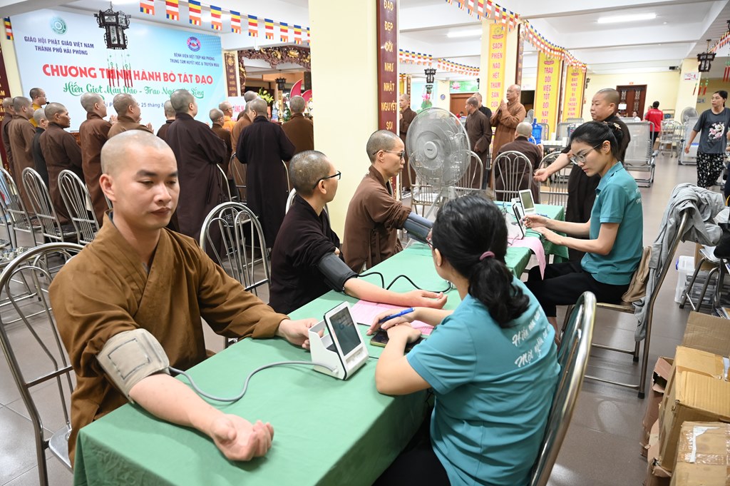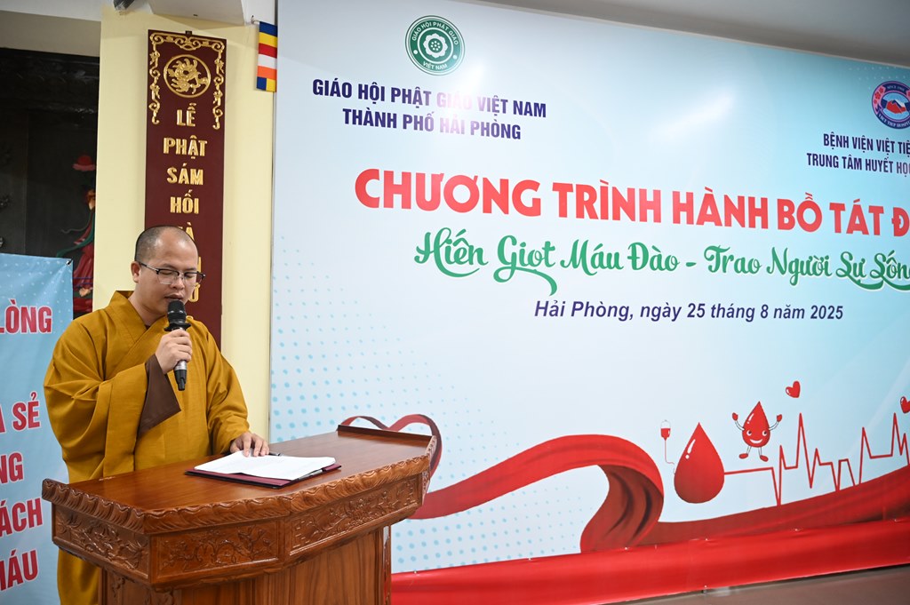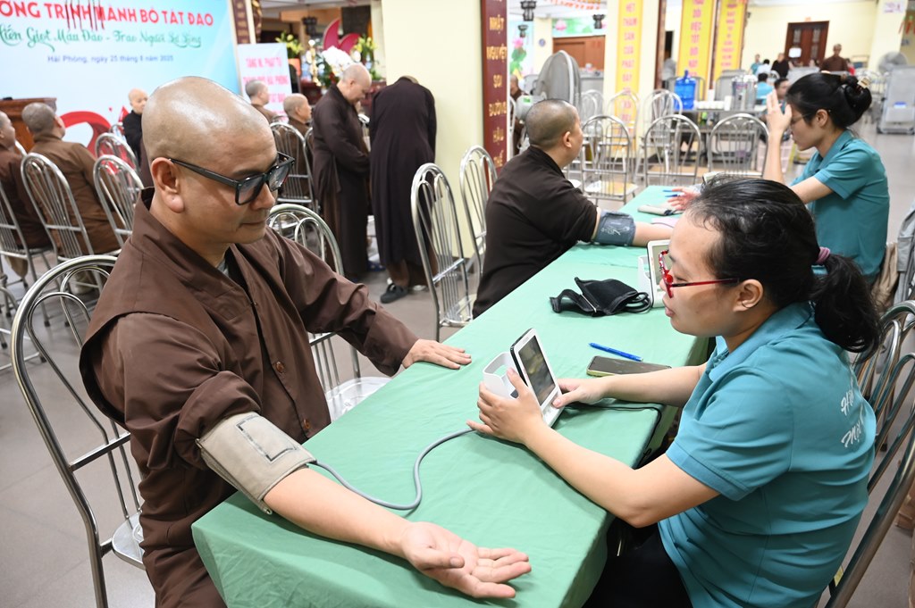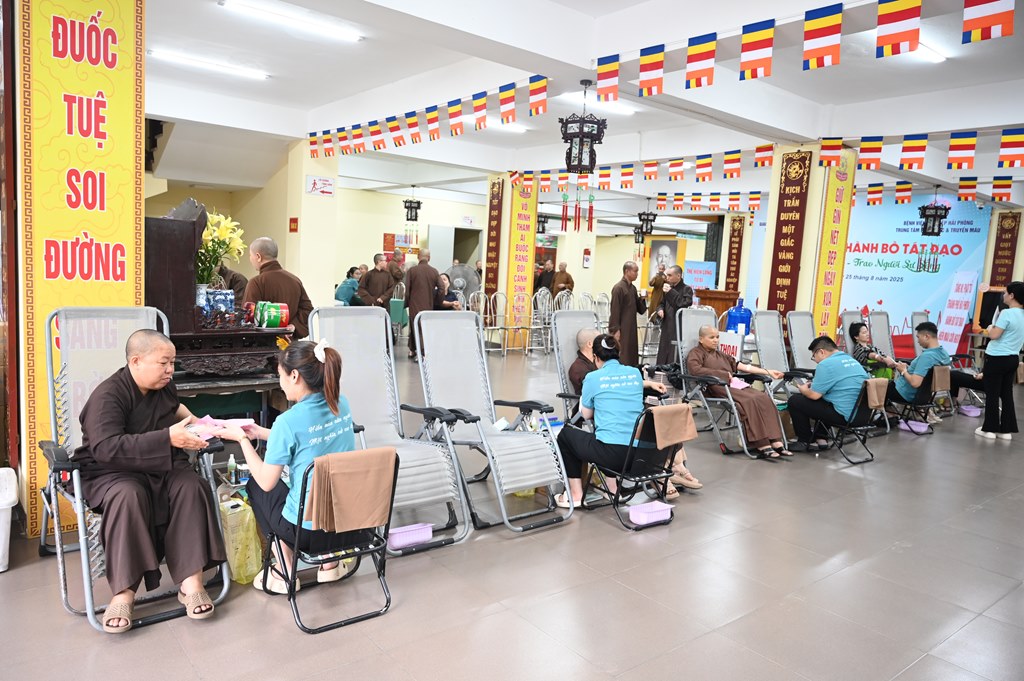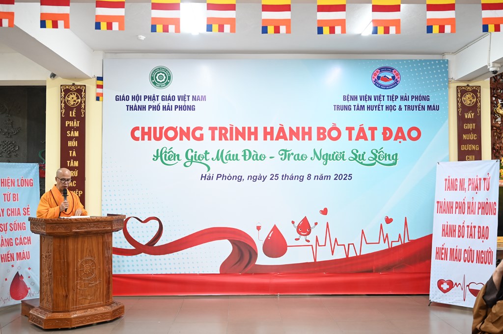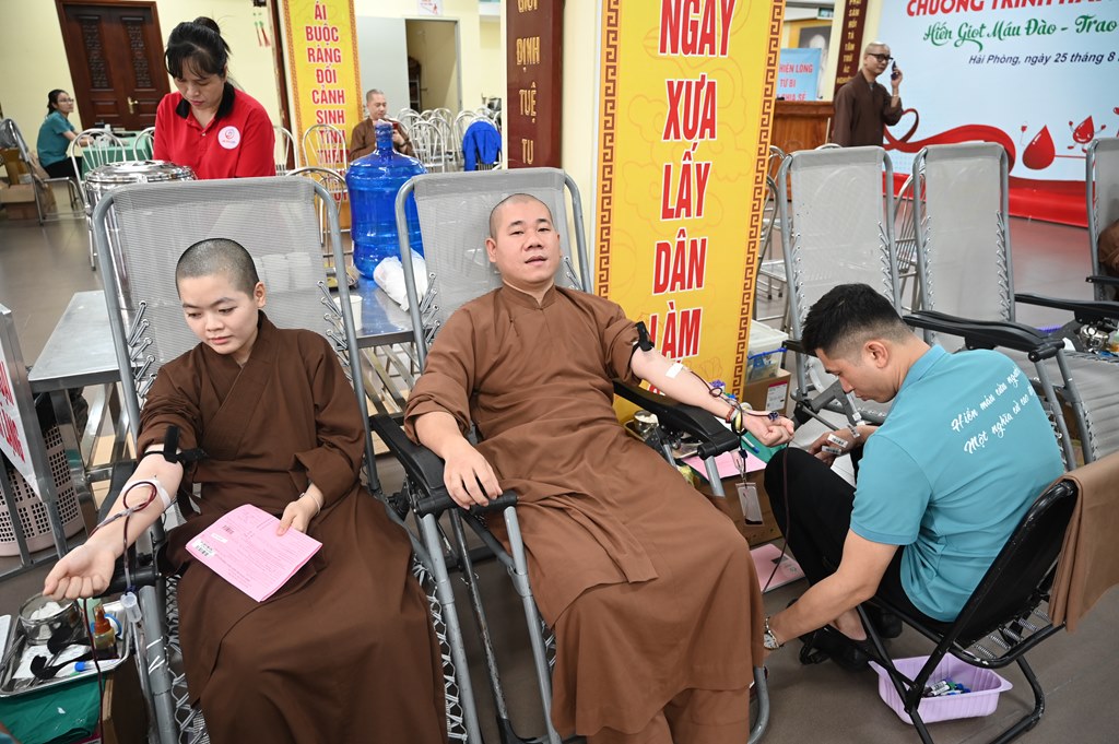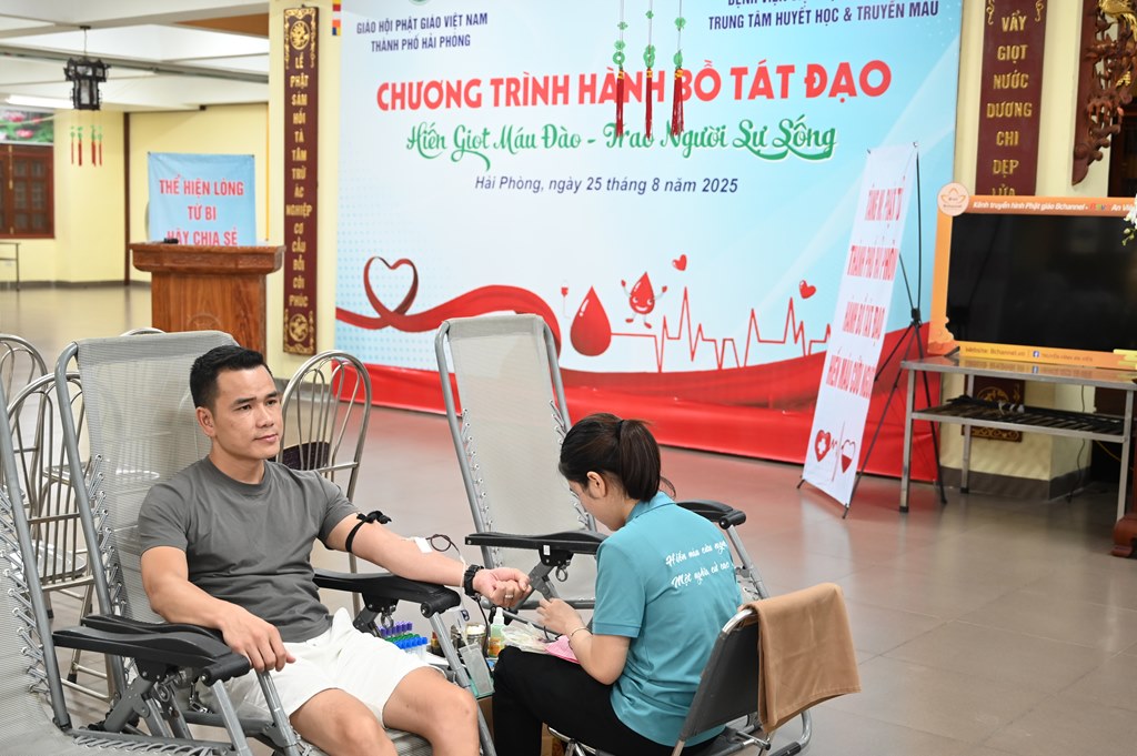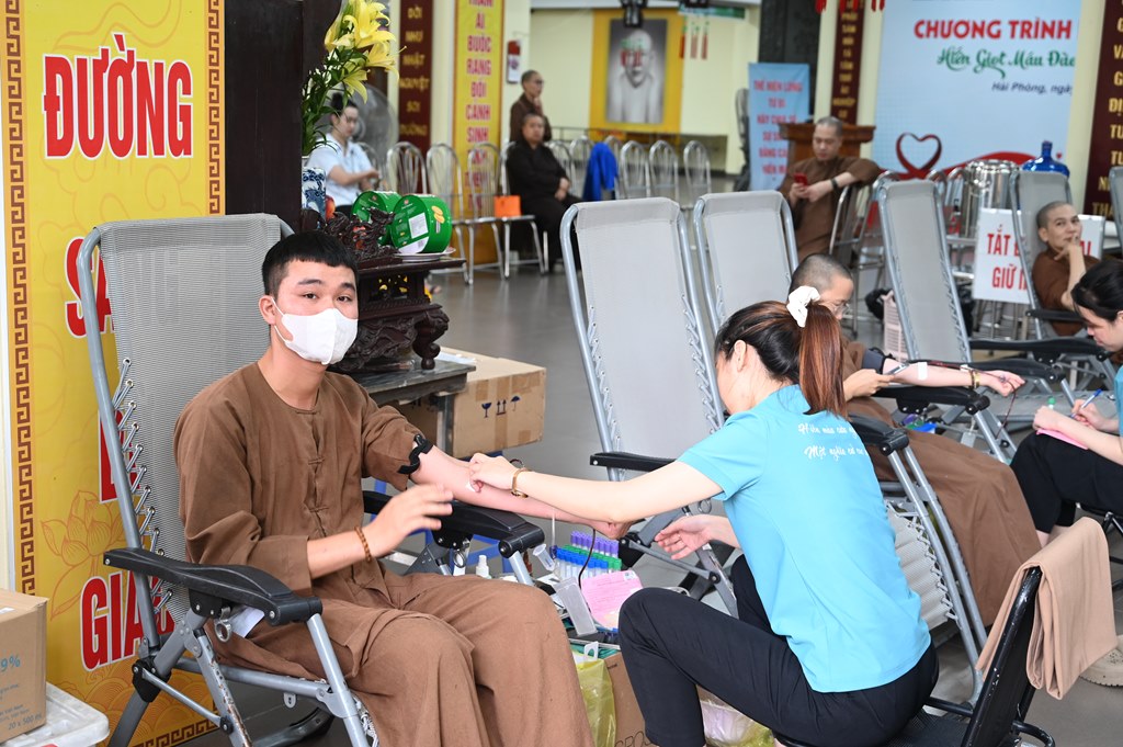 Thực hiện thông bạch số 375/HĐTS – VP1 của Hội đồng trị sự GHPGVN ban hành ngày 15/08/2025, về việc tổ chức hiến máu nhân đạo nhân kỷ niệm 80 năm Cách mạng tháng Tám thành công và Quốc khánh nước CHXHCN Việt Nam 2/9. Sáng ngày 25/08/2025 (Nhằm ngày 03/07 năm Ất Tỵ), Ban Trị sự GHPGVN thành phố Hải Phòng phối hợp cùng Hội Chữ thập đỏ thành phố và Trung tâm Huyết học – truyền máu Bệnh viện Hữu nghị Việt Tiệp (Tp. Hải Phòng) tổ chức chương trình Hiến máu nhân đạo tại chùa Nam Hải (Trụ sở BTS GHPGVN thành phố Hải Phòng), số 197 Hai Bà Trưng, phường Lê Chân, Tp. Hải Phòng.