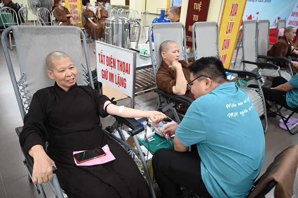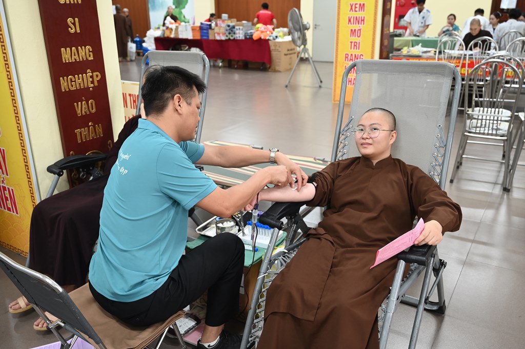 Chư tôn đức Tăng Ni và Phật tử tham gia chương trình Hiến máu nhân đạo