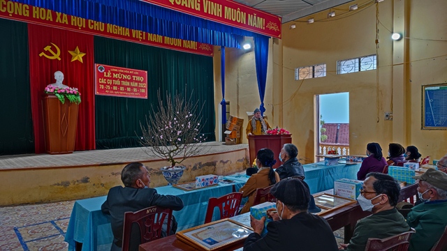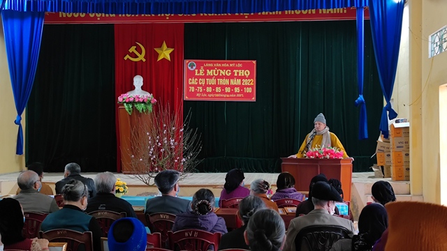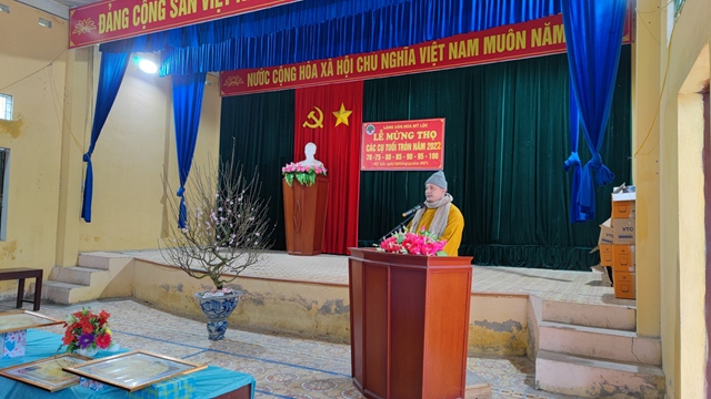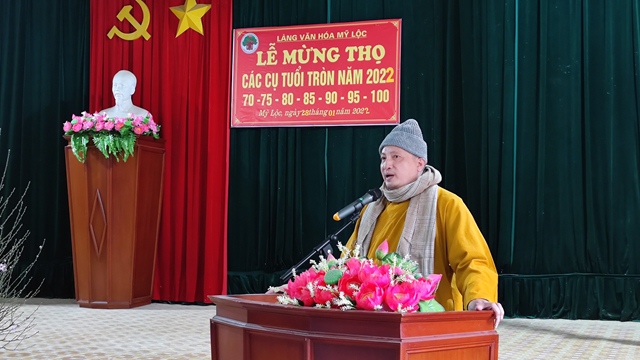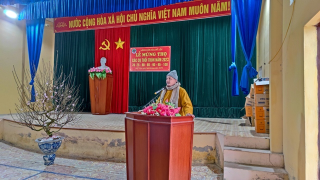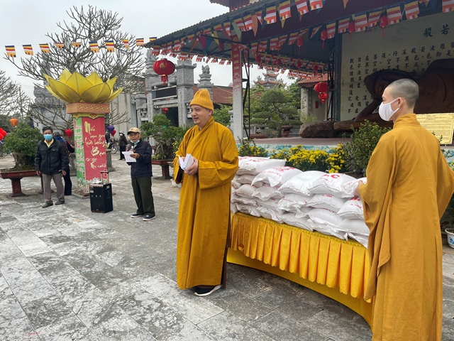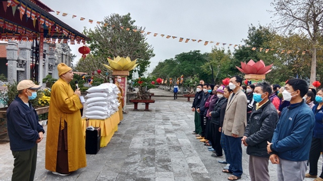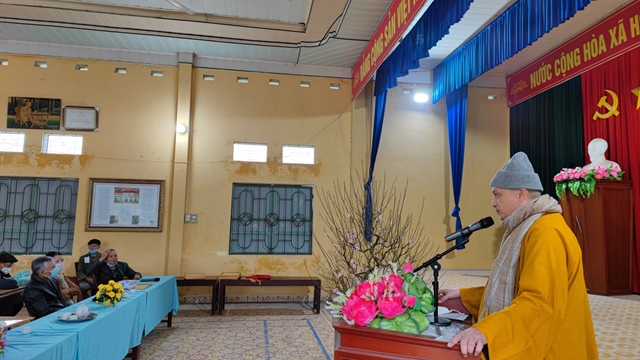 Đại diện chính quyền địa phương đã phát biểu tri ân tới thượng tọa trưởng Ban trị sự huyện, chư tôn đức Tăng Ni trên địa bàn huyện, cùng Phật tử, các nhà hảo tâm, các mạnh thường quân đã phát tâm tịnh tài ủng hộ bà con trong huyện. Kính chúc chư tôn đức Tăng Ni, quý Phật tử, các nhà hảo tâm đón tết cổ truyền an lạc, cát tường, như ý và mong sẽ tiếp tục nhận được sự quan tâm, giúp đỡ của chư tôn đức tăng ni và Phật tử trong huyện, mong chư tôn đức tăng ni và bà con trong huyện tiếp tục phối hợp cùng chính quyền các cấp trong công tác phòng chống, đẩy lùi dịch bệnh Covid-19.