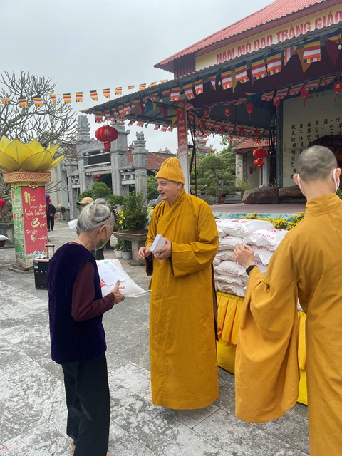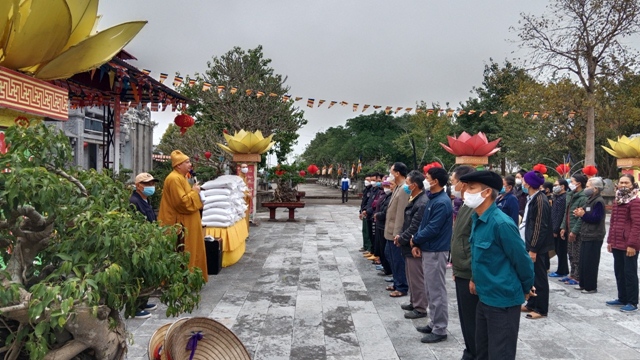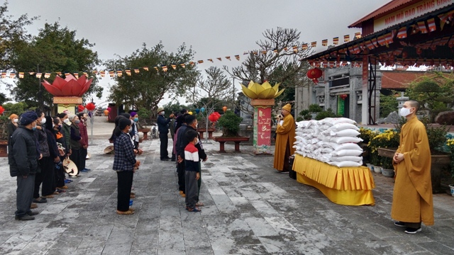 TT. Thích Quảng Minh trao quà tết cho bà con tại chùa Thắng Phúc, huyện Tiên Lãng