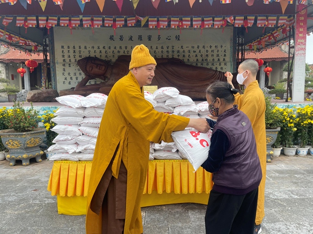 Dịp này, thượng tọa đã gửi lời động viên, thăm hỏi tới các gia đình có hoàn cảnh khó khăn, các gia đình bị ảnh hưởng bởi dịch bệnh Covid-19, mong bà con sớm vượt qua khó khăn, ổn định cuộc sống, tích cực phối hợp cùng các cấp chính quyền địa phương, tuân thủ biện pháp 5K trong phòng chống dịch để đẩy lùi dịch bệnh, đưa cuộc sống trở lại trạng thái bình thường. Đồng thời, thượng tọa cũng chúc bà con đón tết cổ truyền năm Nhâm Dần an vui, hạnh phúc.