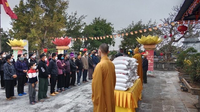 TT. Thích Quảng Minh trao quà tết cho bà con thôn Mỹ Lộc, huyện Tiên Lãng