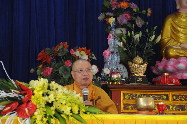 Trước khi kết thúc buổi lễ, TT. Thích Thanh Giác đã ban đạo từ tán thán công đức của Ban tổ chức và sách tấn các Phật tử tu học theo pháp môn Tịnh Độ cần phải tu học một cách rốt ráo. Nếu chúng ta chuyển được cái tâm xấu ác của mình thì chúng ta sẽ còn lại cái tâm trong trắng, thánh thiện, sáng suốt. Đức Phật đã dạy chúng ta có 4 cõi Tịnh Độ: Cõi tịnh độ nhân gian, cõi tịnh độ của Thiên Quốc, cõi tịnh độ của Chư Phật và cõi tịnh độ của tự tâm. Trong bốn cõi tịnh độ đó thì chúng ta nên chọn cõi tịnh độ là Phật Quốc. Nếu chúng ta muốn được về cõi Tịnh độ đó thì mỗi chúng ta phải tu học thật tinh tấn để được sinh về thế giới Cực Lạc của Ngài.