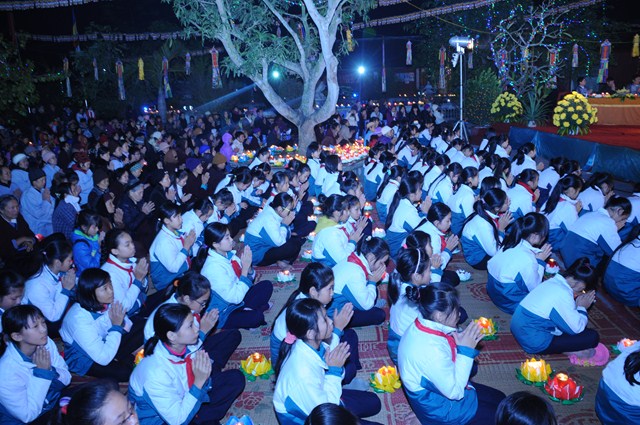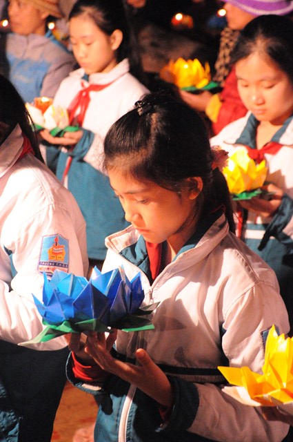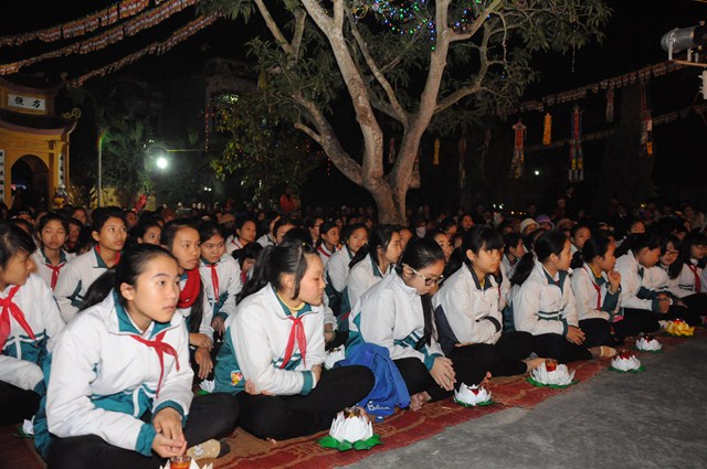 Những ngọn đèn hoa đăng dần dần lan tỏa khắp sân chùa, tạo nên một không gian huyền ảo, lung linh, tràn ngập ánh sáng của lòng Từ Bi, ánh sáng của Trí Tuệ làm xua tan đi màn đêm vô minh, si ám. Khi 48 lời đại nguyện của Đức Phật A Di Đà được vang lên, cả đại chúng dường như lắng đọng tâm tư, dồn hết tâm trí vào những lời nguyện của Ngài. Cầm ngọn nến trên tay, mỗi người đều thầm ước nguyện, mong ước sẽ có một cuộc sống an lạc, người người được hạnh phúc, thoát khỏi khổ đau, mong ước khi hết báo thân này sẽ được sinh về cõi Tịnh Độ của đức Phật A Di Đà mà ở đó sẽ không còn khổ đau, không còn sinh tử luân hồi.