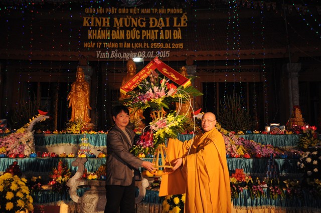 Quang lâm và chứng minh buổi lễ có sự hiện diện của: TT. Thích Thanh Giác – Phó trưởng Ban Hoằng Pháp TƯ GHPGVN, phó trưởng Ban TT Ban trị sự GHPGVN Tp. Hải Phòng, Trường Ban trị sự GHPGVN huyện Vĩnh Bảo, Đại đức Thích Bản Giáo – phó trưởng BTS GHPGVN huyện Vĩnh Bảo, NS. Thích Đàm Tân – Phó trưởng Ban TT Ban trị sự GHPGVN huyện Vĩnh Bảo cùng đông đảo chư tôn thiền đức Tăng Ni trụ trì các chùa trên địa bàn huyện Vĩnh Bảo, chư tôn đức Tăng Ni nội ngoại thành, thành phố Hải Phòng.