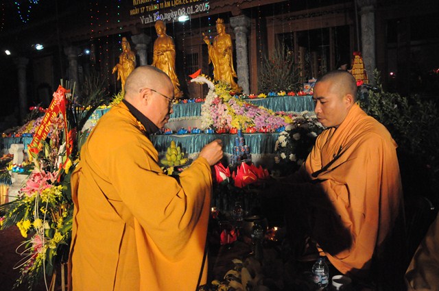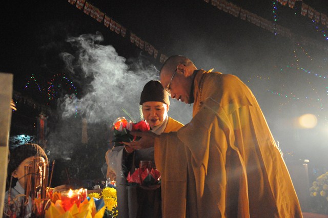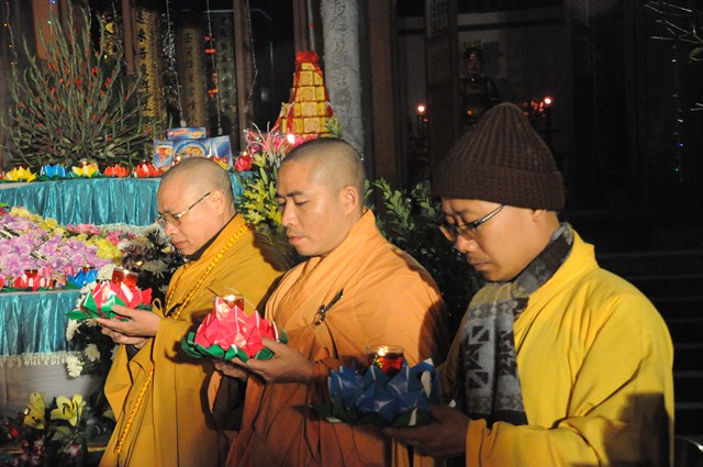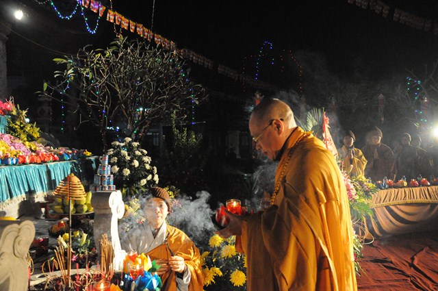 Giờ phút thiêng liêng nhất của buổi lễ đã đến, Đúng 20h30, chư tôn đức Tăng Ni đã cử hành nghi lễ dâng hương, bạch Phật, lễ chú nguyện, cầu nguyện cho âm siêu, dương thái, cầu nguyện cho thế giới được hòa bình, chúng sinh an lạc.