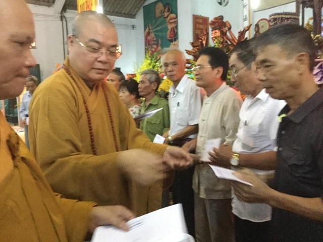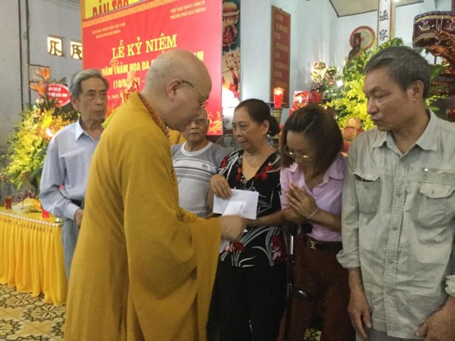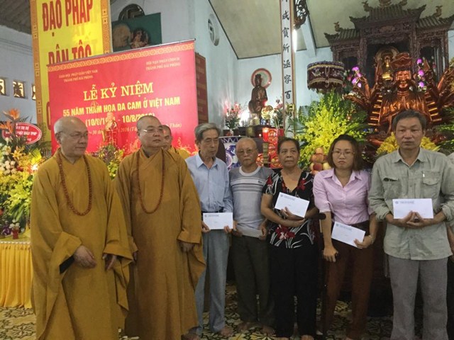 Nhân buổi lễ kỷ niệm 55 năm thảm họa da cam ở Việt Nam và lễ cầu siêu cho nạn nhân chất độc da cam dioxin, HT. Thích Thanh Nhiễu và Hòa thượng Thích Quảng Tùng đã thay mặt cho HĐTS TƯ GHPGVN và BTS GHPGVN Tp. Hải Phòng trao quà từ thiện cho các nạn nhân chất độc da cam. Đồng thời BTS GHPGVN thành phố Hải Phòng cũng đã phát động phong trào ủng hộ các nạn nhân da cam dioxin trươc khi kết thúc buổi lễ.