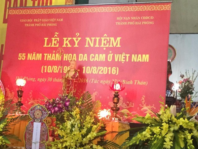 Trước khi chính thức vào buổi lễ cầu siêu, Hòa thượng Thích Quảng Tùng đã chia sẻ những nỗi đau của các nạn nhân bị nhiễm chất độc da cam do hậu quả chiến tranh để lại. Theo các cơ quan y tế ở Việt Nam ước tính thì có khoảng 400 ngàn người đã bị chết hoặc tàn tật và có khoảng 500 ngàn trẻ em hiện nay bị di dạng, dị tật do chất độc này gây ra. Trước tình hình đó, Ban trị sự GHPGVN thành phố Hải Phòng đã phối hợp với Hội nạn nhân chất độc da cam/dioxin thành phố tổ chức buổi lễ cầu siêu cho các nạn nhân chất độc da cam đã hy sinh vì sự nghiệp giải phóng dân tộc, bảo vệ Tổ quốc.
