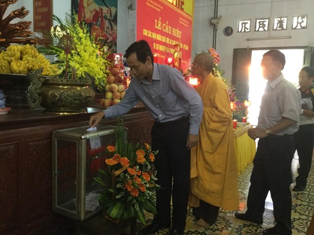 Để bày tỏ tấm lòng tri ân đối với các nạn nhân bị nhiễm chất độc da cam dioxin đã hy sinh cho độc lập, tự do của Đất nước, chư tôn đức Tăng Ni hạ trường chùa Nam Hải cùng đông đảo quý Phật tử và nhân dân địa phương đã làm lễ dâng hương, bạch Phật, tụng kinh chú nguyện, cầu nguyện cho các nạn nhân sớm được siêu thoát.
