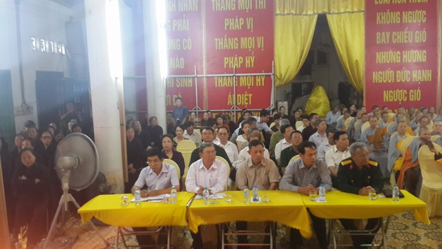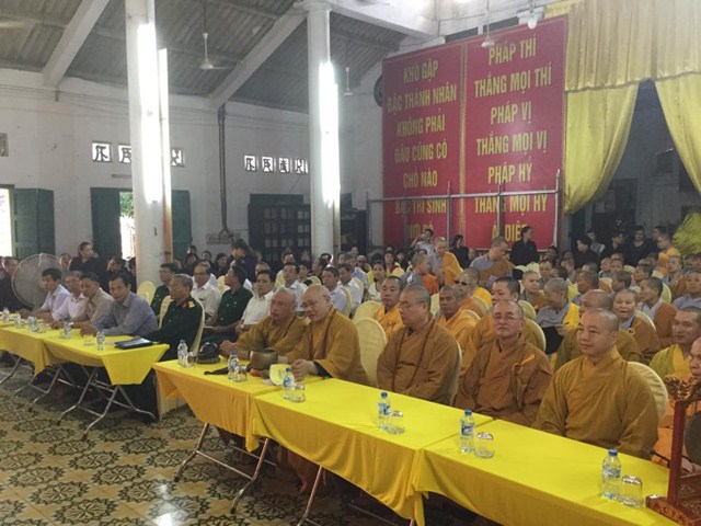 Quang lâm và chứng minh buổi lễ có Hòa thượng Thích Thanh Nhiễu – Phó chủ tịch thường trực HĐTS TƯ GHPGVN; Hòa thượng Thích Quảng Tùng – Phó chủ tịch HĐTS TƯ GHPGVN, trưởng Ban trị sự GHPGVN thành phố Hải Phòng, TT. Thích Thanh Giác – Phó trưởng Ban hoằng pháp TƯ GHPGVN, phó trưởng Ban thường trực BTS GHPGVN thành phố Hải Phòng, chư tôn đức Tăng Ni ủy viên thường trực BTS GHPGVN Tp. Hải Phòng và đông đảo chư tôn đức Tăng Ni tại hạ trường chùa Nam Hải – Trụ sở BTS GHPGVN thành phố Hải Phòng.