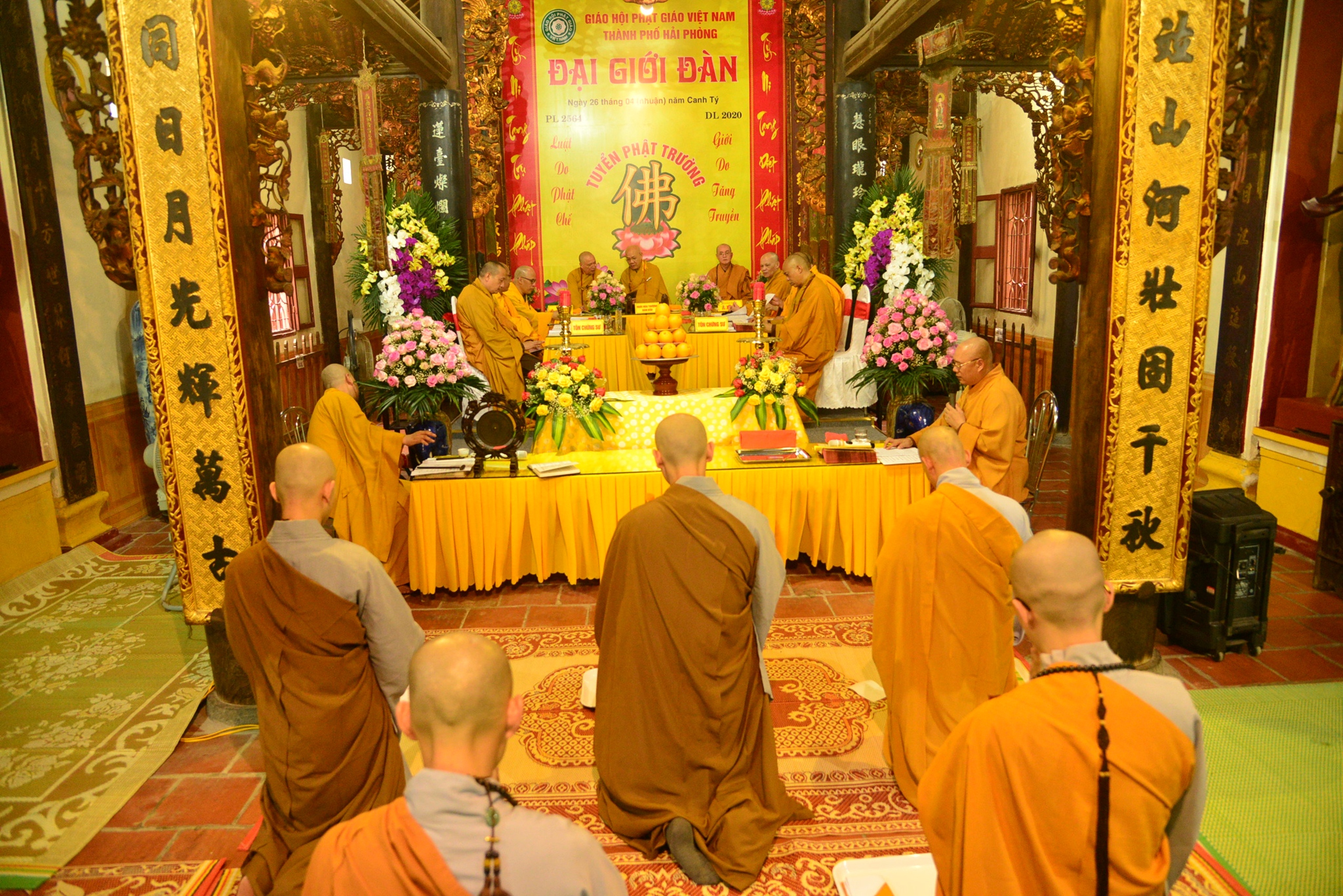 Sáng nay 17/6/2020 ( nhằm ngày 26/4 Nhuận năm Canh Tý), tại chùa Hàng  – Văn phòng Ban Trị sự GHPGVN Thành phố Hải Phòng, phường Hồ Nam, quận Lê Chân, thành phố Hải Phòng đã trang nghiêm, trọng thể diễn ra Đại giới đàn PL.2564 – DL.2020 của GHPGVN Thành phố Hải Phòng với 39 giới tử xin thụ giới năm nay. Trong đó có 12 tỷ khiêu, 5 Sa di và 13 tỷ khiêu ni, 9 Sa di Ni.
