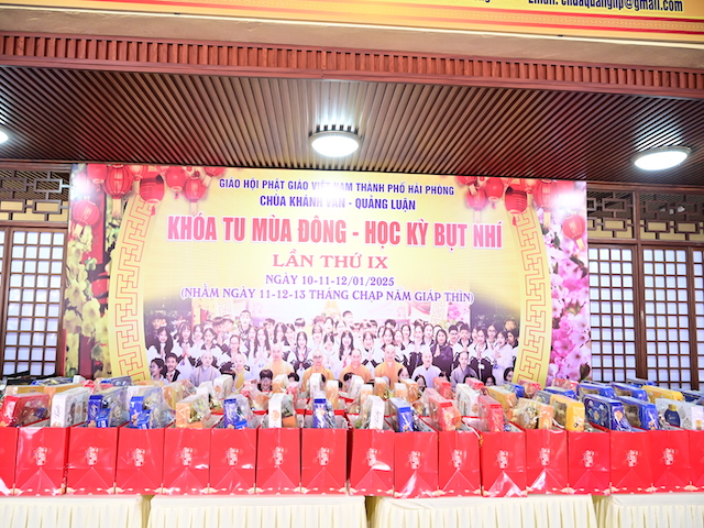 Buổi chiều cùng ngày tại chùa Khánh Vân (Quảng Luận), Đạo tràng Pháp Hoa thành phố Hải Phòng cũng đã tổ chức lễ Tổng kết công tác Phật sự năm 2024 và khánh tuế, chúc mừng Đại đức Thích Quảng Nghĩa bảo vệ thành công Luận án Tiến sĩ đạt kết quả xuất sắc.