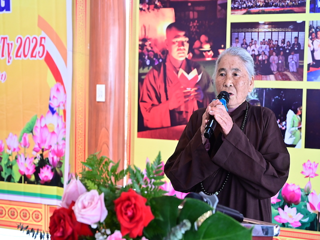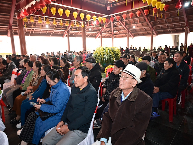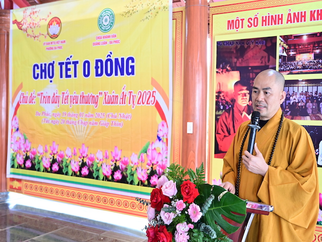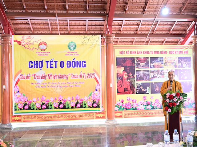 Phát biểu khai mạc chương trình, Đại đức Thích Quảng Nghĩa cho biết, đây là cơ hội để chúng ta cùng nhau gieo trồng những hạt giống thiện lành, cùng chung tay hỗ trợ những hoàn cảnh khó khăn, mang lại niềm vui và hy vọng cho những người kém may mắn hơn. Chương trình không chỉ làm đẹp đạo lý nhân văn mà còn góp phần xây dựng một xã hội đầy ắp tình người, một cộng đồng bền vững và gắn kết; mỗi phần quà, mỗi lời động viên sẽ là ngọn lửa sưởi ấm trái tim của những người nhận, giúp họ vượt qua khó khăn trong cuộc sống. Đó cũng chính là cách để chúng ta thể hiện tinh thần nhập thế của đạo Phật, mang giáo lý từ bi, cứu khổ ban vui của Đức Phật đến với tất cả mọi người. Trước khi ngừng lời, Đại đức chúc bà con đón xuân mới an lạc, đủ đầy và hạnh phúc.