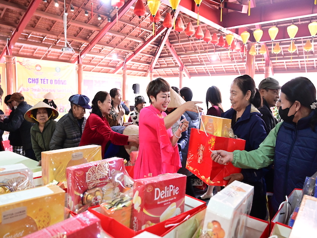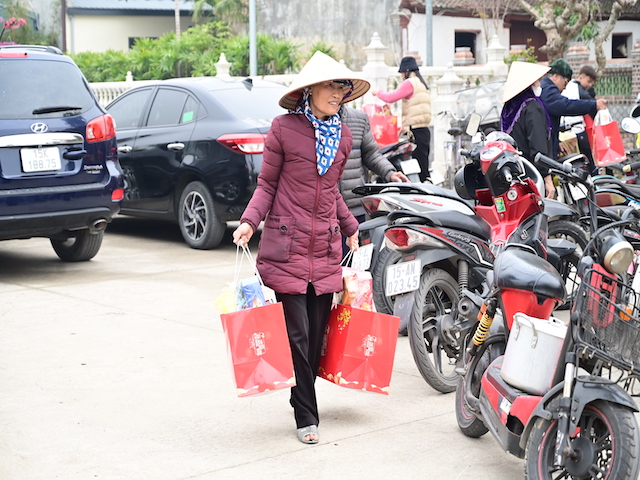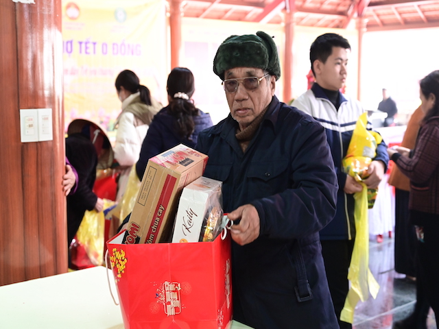 Bà con nhận túi quà tết từ Ban tổ chức