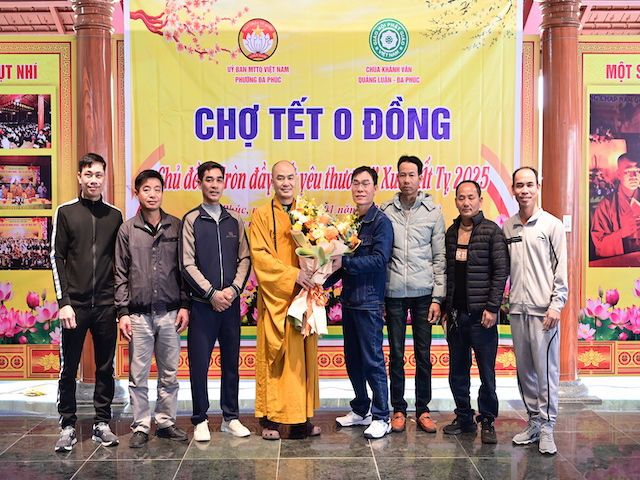 Sáng ngày 19/01/2025 (nhằm ngày 20 tháng Chạp năm Giáp Thìn), Chùa Khánh Vân (Quảng Luận) phối hợp cùng UBMTTQVN phường Đa Phúc (Quận Dương Kinh, thành phố Hải Phòng) tổ chức phiên chợ tết 0 đồng với chủ đề: “ Tròn đầy Tết yêu thương” xuân Ất tỵ – 2025, tặng 130 phần quà cho các gia đình có hoàn cảnh khó khăn, học sinh nghèo vượt khó đang sinh sống, học tập tại phường Đa Phúc, quận Dương Kinh, thành phố Hải Phòng.