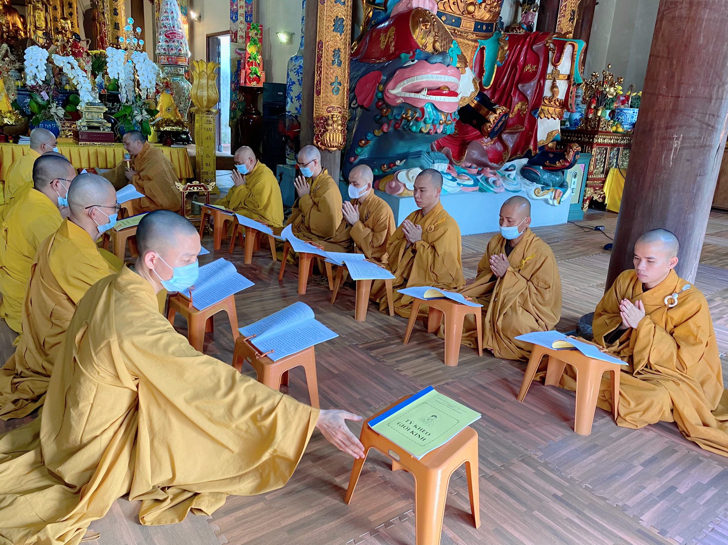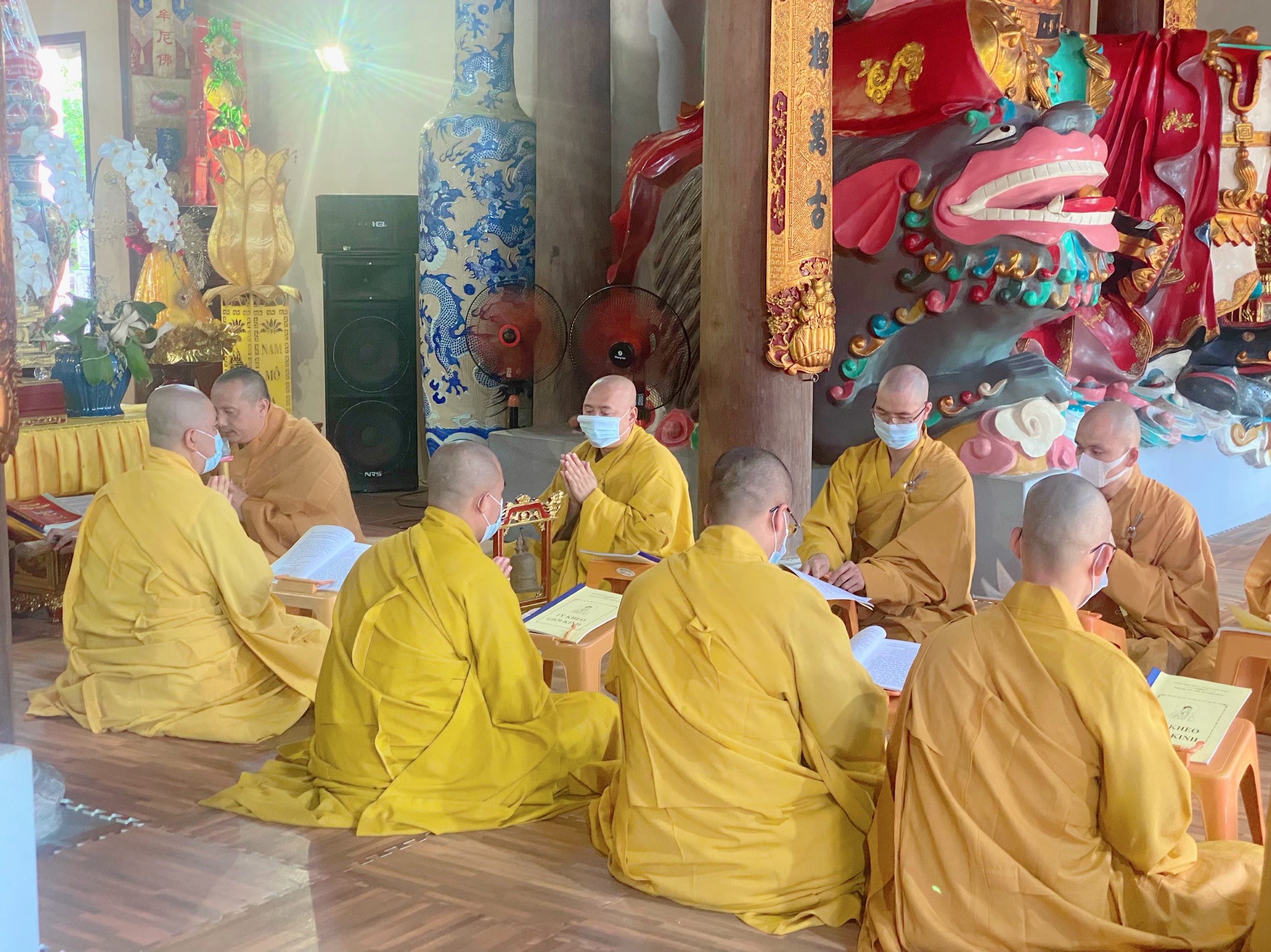 Trước khi chính thức diễn ra buổi lễ Bố – Tát, thuyết giới, Chư tôn đức Tăng Ni hạ trường đã nghiêm chỉnh chấp hành theo đúng thông điệp 5K của Bộ Y Tế và Sở Y tế thành phố Hải Phòng, tất cả chư tôn đức Tăng Ni đều thực hiện sát khuẩn, đeo khẩu trang và thực hiện giãn cách.