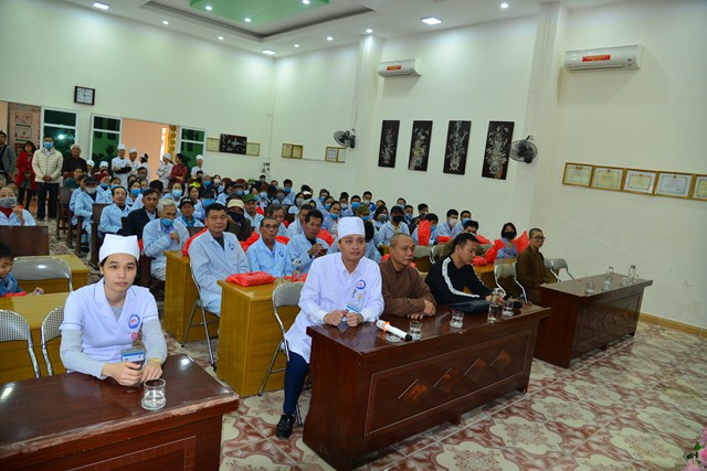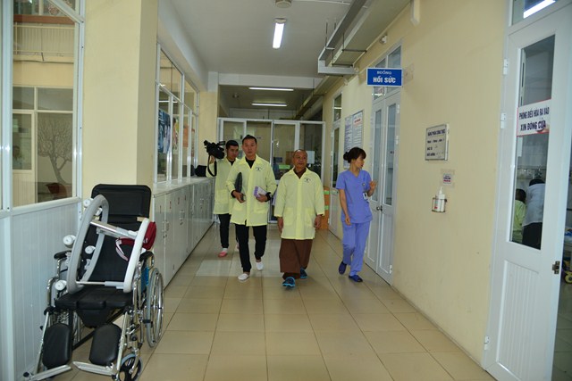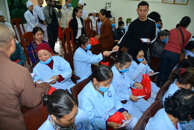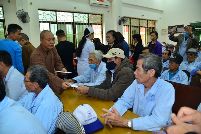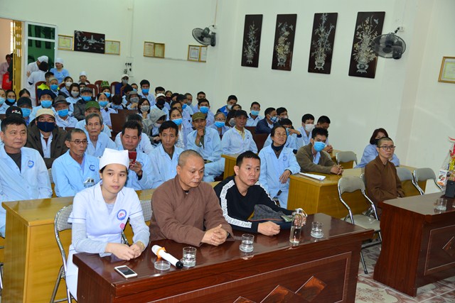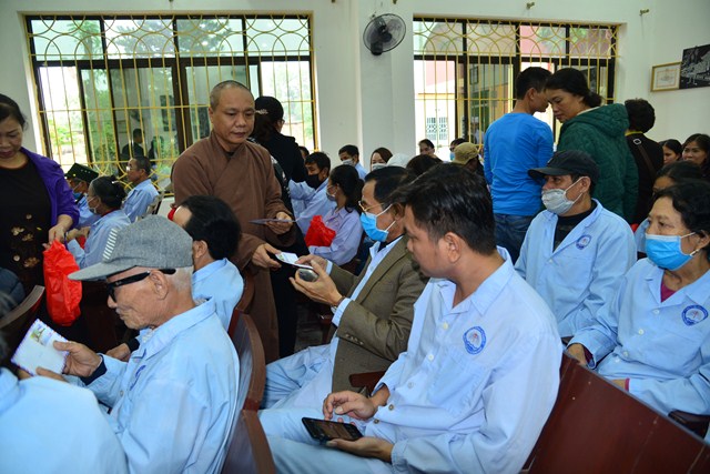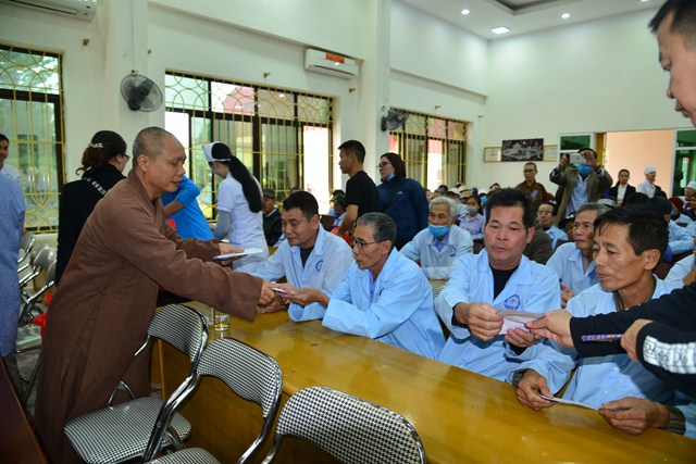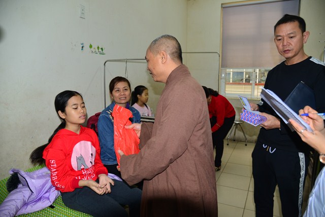 Tại mỗi giường bệnh, Thượng tọa Thích Tục Khang, cùng các Phật tử đã ân cần thăm hỏi, động viên các bệnh nhân và thân nhân của người bệnh hãy tin tưởng vào đội ngũ thầy thuốc, y bác sĩ, điều dưỡng của bệnh viện, sống lạc quan, yêu đời, cố gắng tinh tấn niệm Phật để đẩy lùi bệnh tật, điều trị theo đúng phác đồ mà y Bác sỹ đưa ra, sớm được về ăn tết, đoàn tụ cùng gia đình.