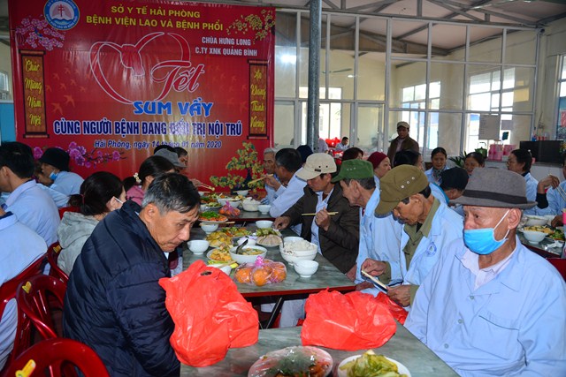 Sáng 14/01/2020 ( nhằm ngày 20 tháng 12 năm Kỷ Hợi), chư tăng và Phật tử chùa Hưng Long, phường Trại Chuối, quận Hồng Bàng, thành phố Hải Phòng phối hợp cùng Công ty Xuất nhập khẩu Quảng Bình tổ chức chương trình “ Tết Sum Vầy”, trao tặng hơn 600 phần quà cho bệnh nhân tại Bệnh viên Trẻ em và Bệnh viện Lao Phổi, thành phố Hải Phòng nhân dịp chuẩn bị đón tết cổ truyền Canh Tý – 2020.