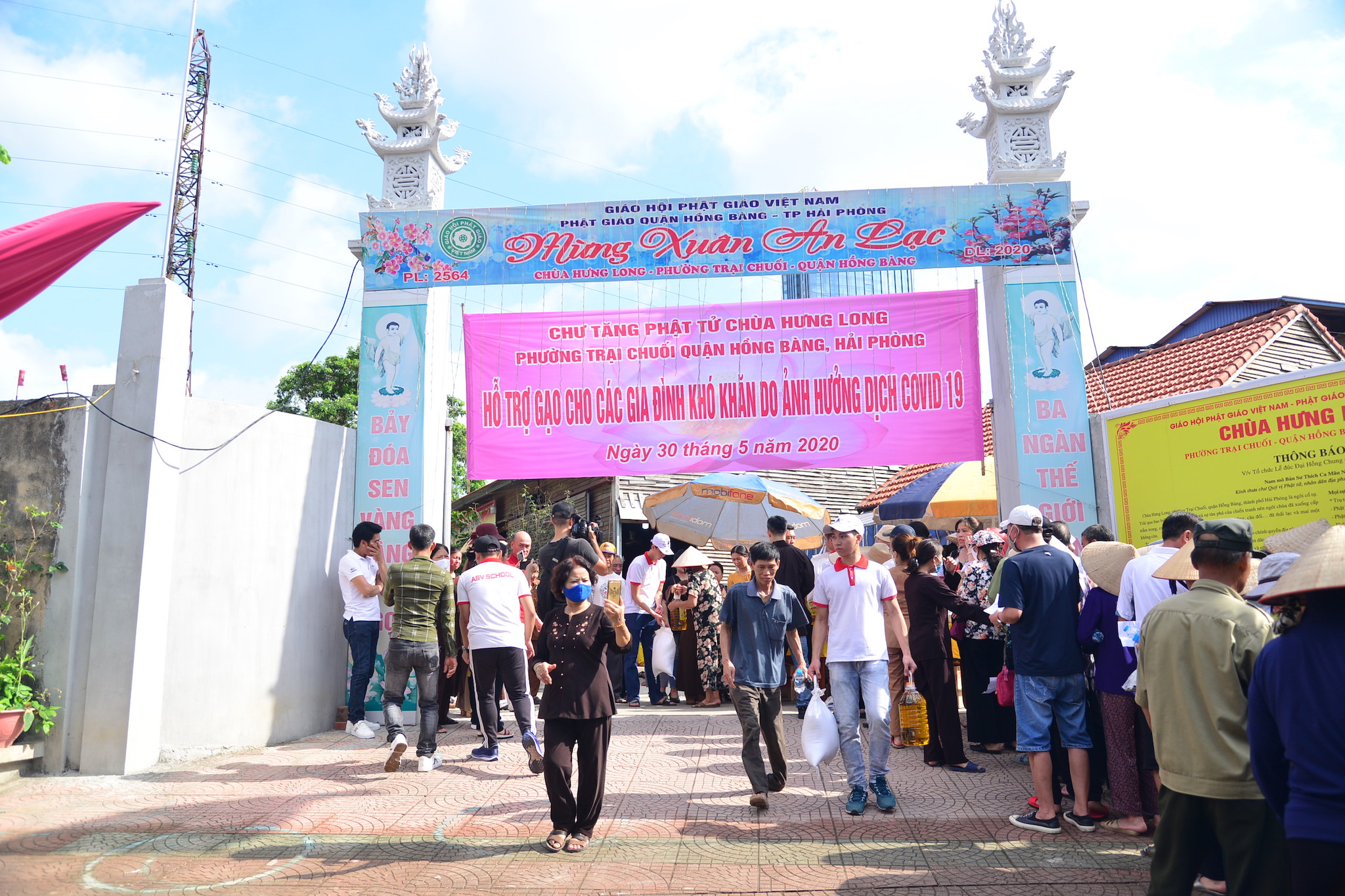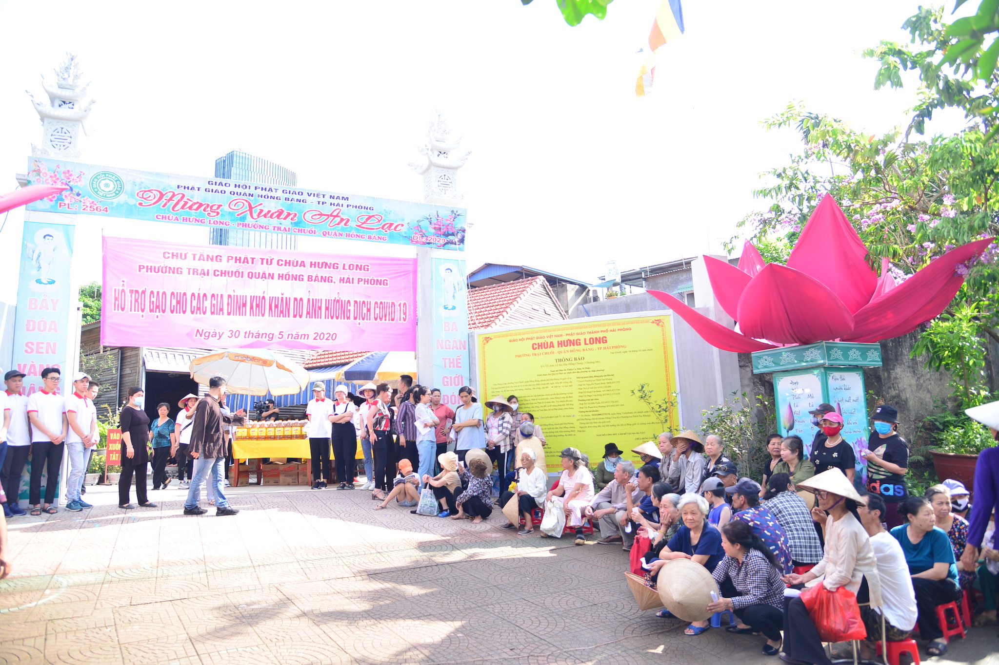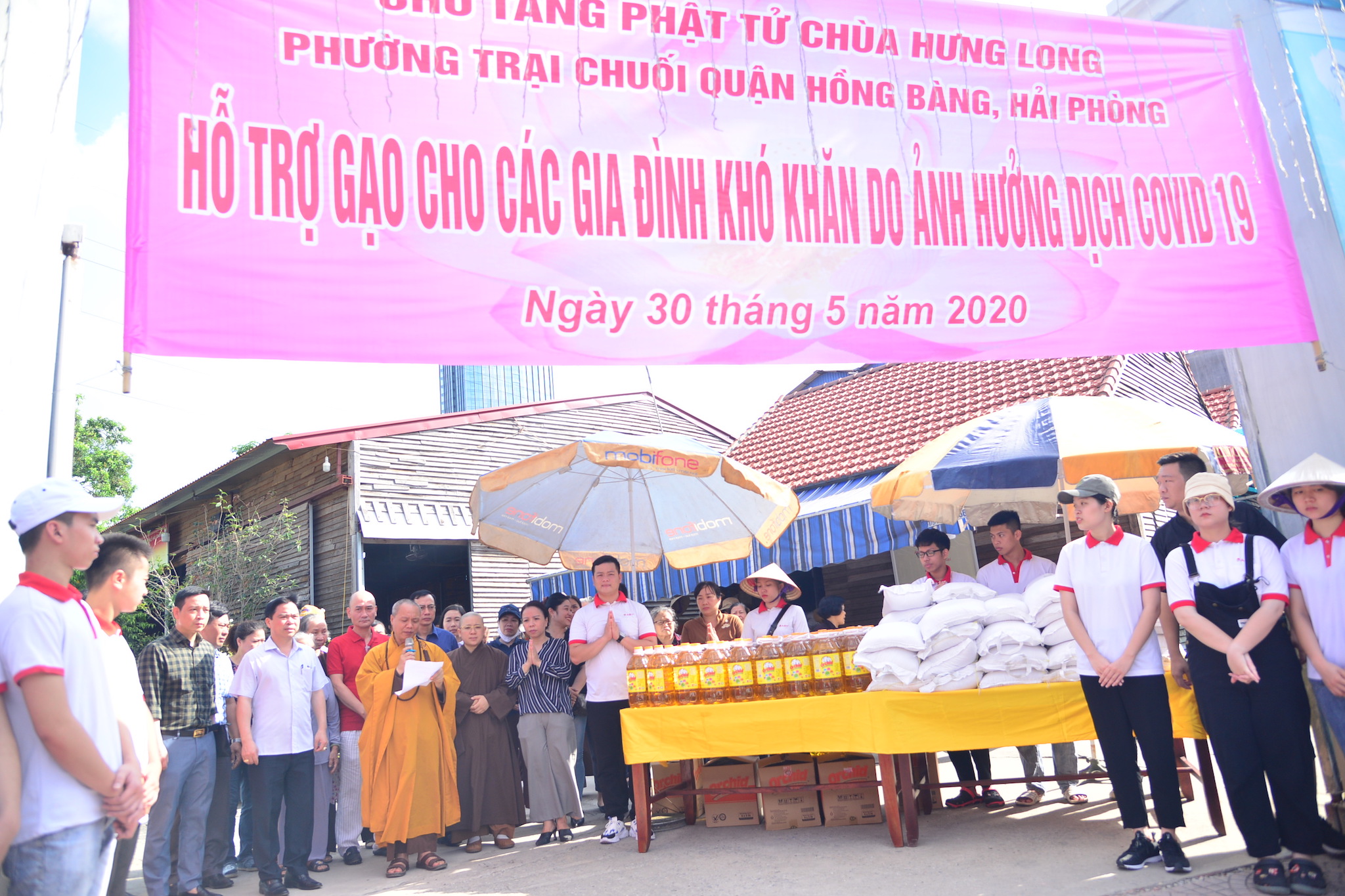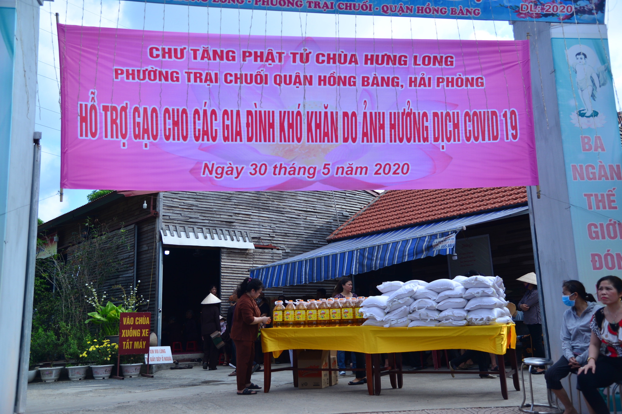 Sáng ngày 30/05/2020 ( nhằm ngày 08/04 nhuận năm Canh Tý), Chư tăng và Phật tử chùa Hưng Long, phường Trại Chuối, quận Hồng Bàng, thành phố Hải Phòng đã trao 520 phần quà cho các hộ gia đình có hoàn cảnh khó khan bị ảnh hưởng bởi dịch bệnh Covid-19 đang sinh sống tại phường Trại Chuối, phường Thượng Lý và phường Hạ Lý, quận Hồng Bàng, thành phố Hải Phòng.
