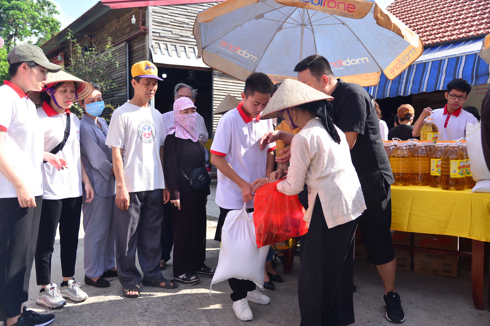 Dịp này, thượng toạ Thích Tục Khang đã cùng các cấp chính quyền địa phương, các mạnh thường quân trao tặng 520 phần quà, mỗi phần quà trị giá hơn 300 ngàn đồng, bao gồm: 10kg gạo ngon và 5 lít dầu ăn với tổng giá trị lên tới gần 160 triệu đồng cho các hộ gia đình có hoàn cảnh khó khăn trên địa bàn 3 phường của quận Hồng Bàng bị ảnh hưởng bởi dịch bệnh Covid-19. Trong đó, phường Trại Chuối: 320 suất, phường Thương Lý: 100 suất và phường Hạ Lý: 100 suất.