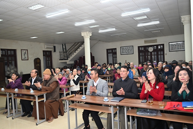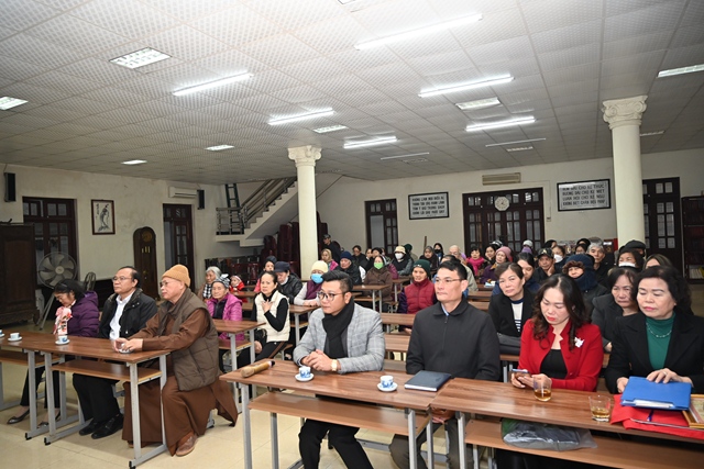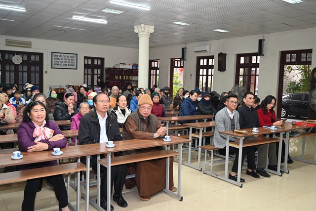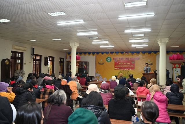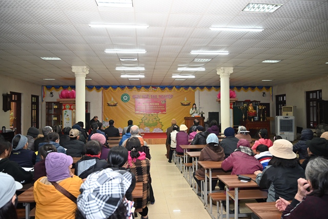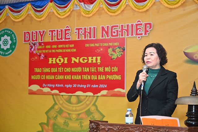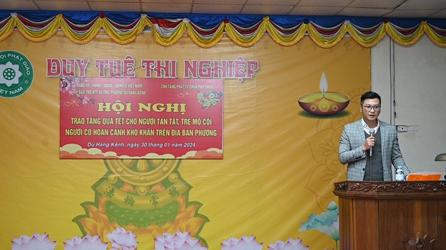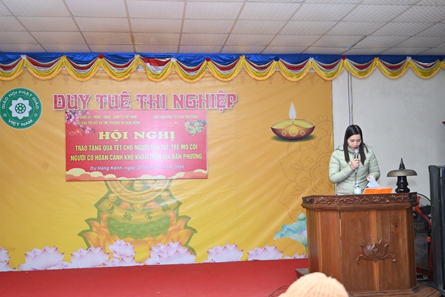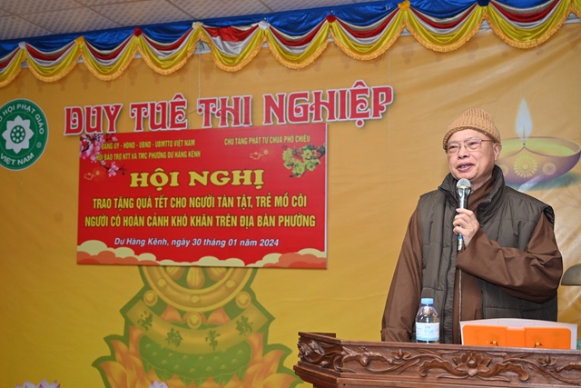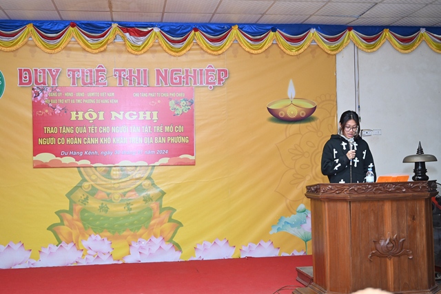 Thay mặt cho Ban tổ chức chương trình, bà: Phạm Thị Lợi – Chủ tịch Hội Bảo trợ Người tàn tật và Trẻ mồ côi phường Dư Hàng Kênh đã lên phát biểu khai mạc Hội nghị. Theo đó, cứ vào dịp gần đến tết Nguyên đán cổ truyền, chư tôn đức Tăng, Phật tử chùa Phổ Chiếu lại phối hợp cùng các cấp chính quyền địa phương tổ chức chương trình tặng quà tết cho các gia đình chính sách, người có công, người già neo đơn, trẻ mồ côi, các hộ nghèo, cận nghèo, hộ gia đình có hoàn cảnh khó khăn, đối tượng bảo trợ xã hội đang sinh sống trên địa bàn phường Dư Hàng Kênh nhằm phát huy truyền thống: “ Tương thân tương ái, lá lành đùm lá rách” của Dân tộc Việt Nam cũng như tinh thần Từ Bi – Cứu Khổ – Ban Vui của Đạo Phật. Với tinh thần đó đã phần nào động viên, khích lệ những hoàn cảnh khó khăn, đảm bảo cho mọi người, cho mọi gia đình đều có tết ấm áp, yêu thương.