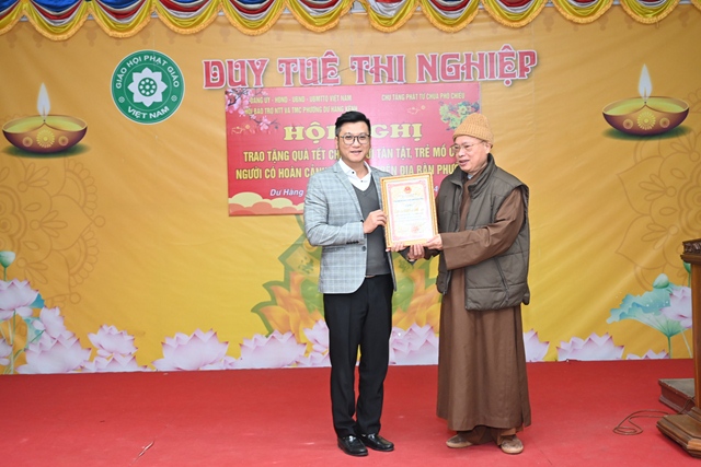 Chính quyền địa phương trao Giấy chứng nhận Tấm Lòng Vàng cho Hòa thượng viện chủ Tổ đình Phổ Chiếu.