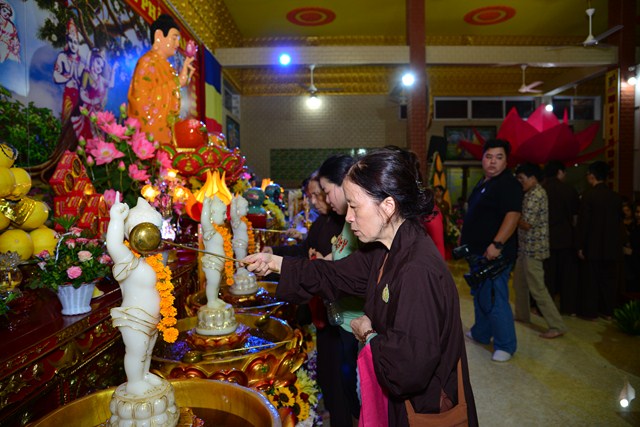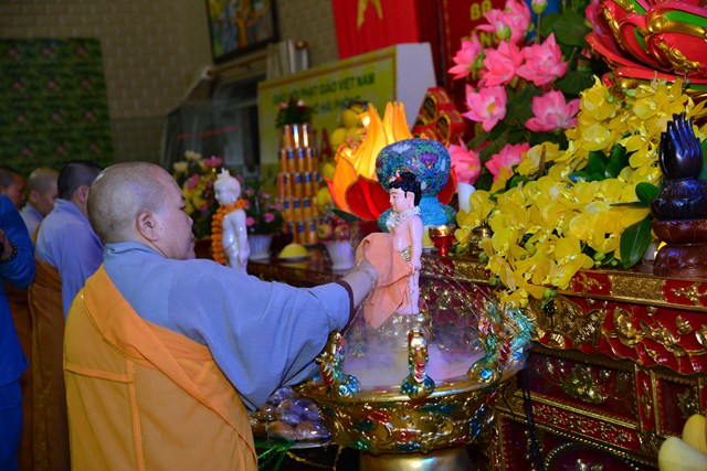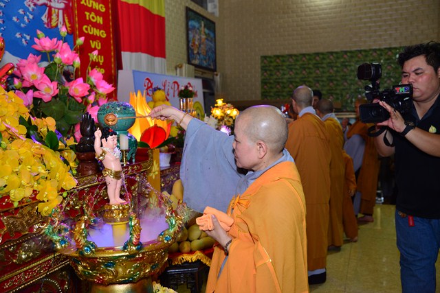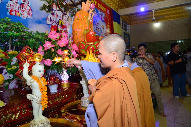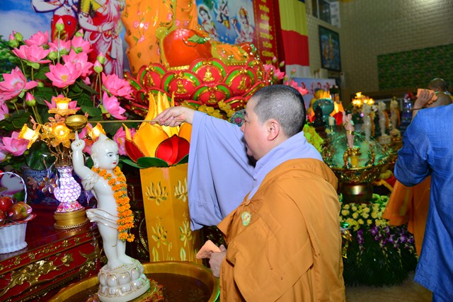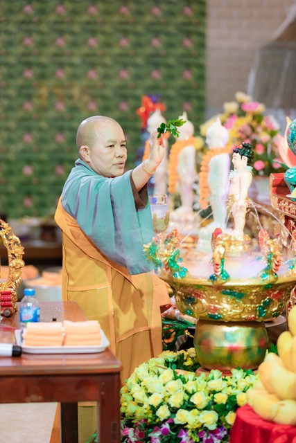 Ngoài ra, Ni sư trụ trì còn giảng cho các phật tử hiểu về ý nghĩa và công đức của “ tắm Phật”. Tắm Phật ở đây là để mỗi chúng ta tự gột rửa tham – sân – si, gột rửa thân và tâm của chính mình. Đối trước tôn tượng sơ sinh của Ngài, chúng ta thầm nguyện sẽ cố gắng thực hành theo đúng lời dạy của Ngài để có một cuộc sống an lạc và hạnh phúc.