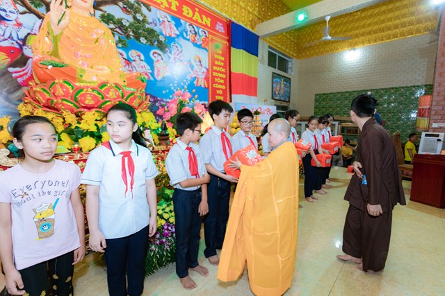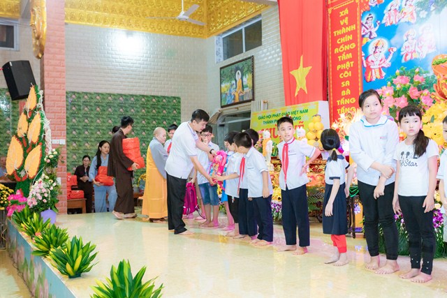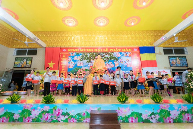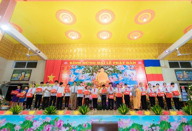 Nhân dịp này, NS. Thích Tâm Chính đã phát trao gần 100 bộ sách giáo khoa cấp 1, cấp 2 và 50 cặp sách, 900 cuốn vở cho  các em học sinh nghèo, có hoàn cảnh khó khăn của các trường Tiểu học và THCS trên địa bàn quận Hải An và quận Ngô Quyền với tổng giá trị khoảng 70 triệu đồng. Đây là hoạt động thiết thực, đầy ý nghĩa để cúng dàng Đức Bản Sư Thích Ca Mâu Ni Phật nhân kỷ niệm 2643 năm ngày đản sinh của Ngài.