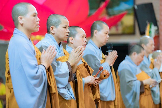Sư thầy Thích Giới Định điều hành buổi lễ