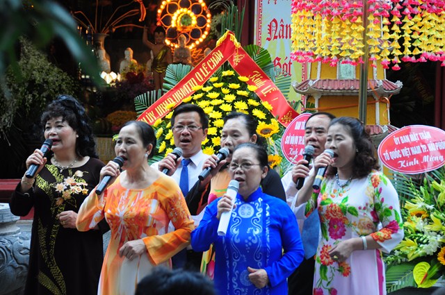 Trước khi buổi lễ được chính thức diễn ra là các tiết mục văn nghệ chào mừng do các nghệ sỹ đoàn chèo Hải Phòng và các Phật tử đang sinh hoạt tại các đạo tràng chùa Phổ Chiếu trình bày để cúng dàng lên mười phương Chư Phật nhân kỷ niệm 2640 năm ngày sinh của đức từ phụ Thích Ca Mâu Ni Phật.