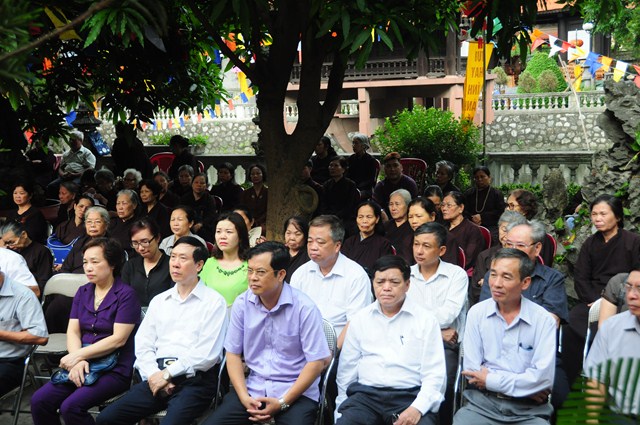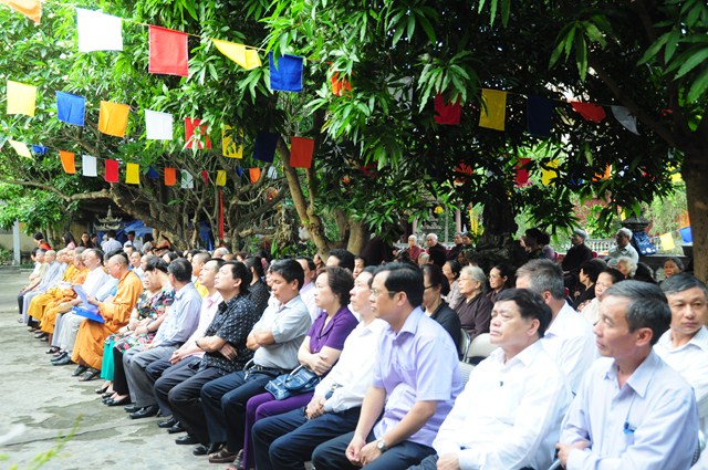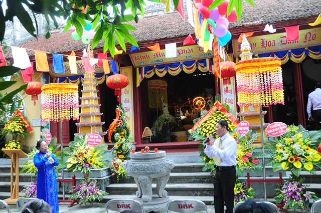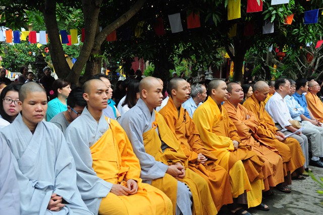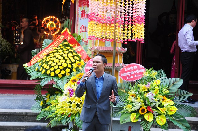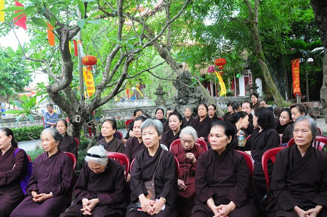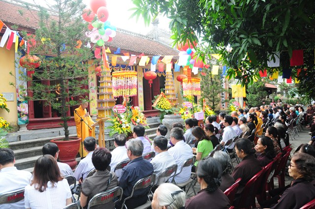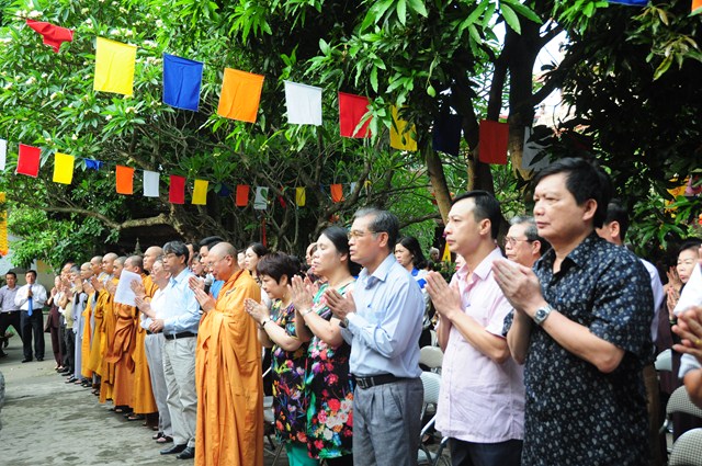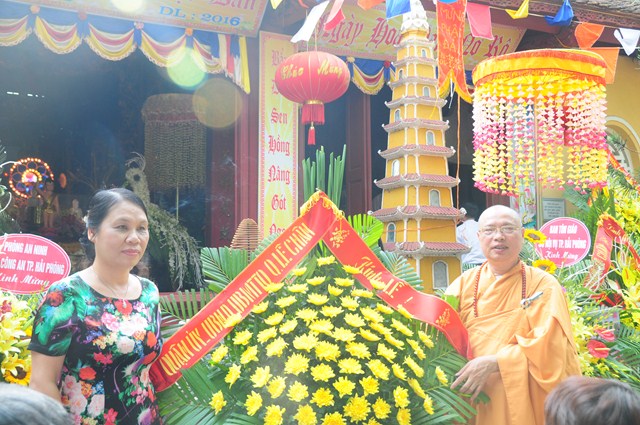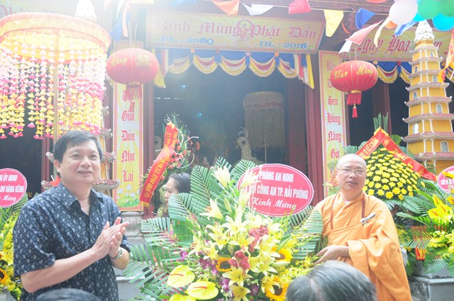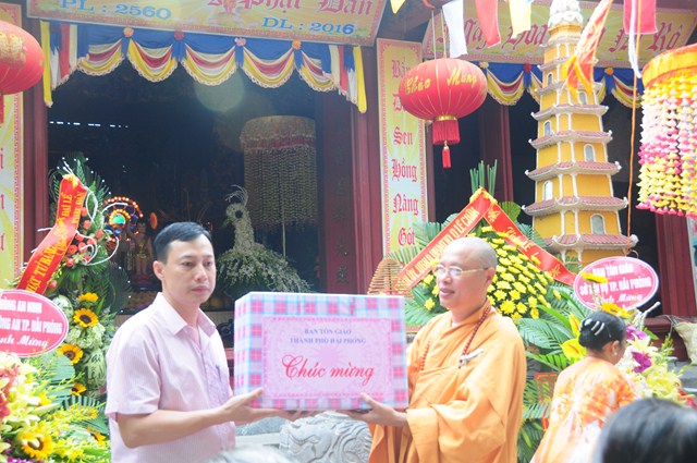 Nhân dịp này, Chư tôn đức Tăng trong chốn trụ xứ đã vinh dự đón nhận những phần quà, những lẵng hoa tươi thắm chúc mừng chư tôn đức Tăng Ni và bà con Phật tử nhân mùa Phật đản PL. 2560 – DL. 2016 từ các cấp lãnh đạo của Ban tôn giáo Tp. Hải Phòng, lãnh đạo các phòng ban của quận Lê Chân, phường Hồ Nam…