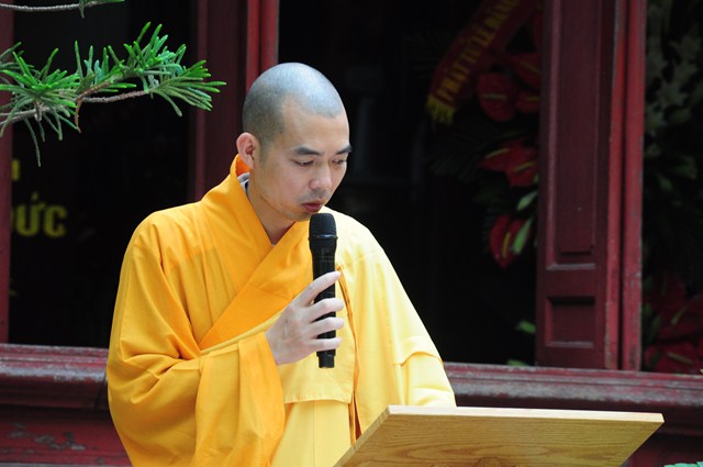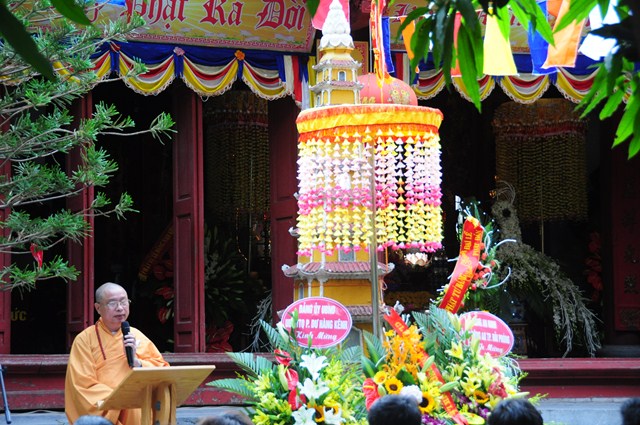 Tiếp đó, Đại đức Thích Giác Huy – Ủy viên thường trực BTS GHPGVN Tp. Hải Phòng đã lên tuyên đọc Diễn văn khai mạc Đại lễ Phật đản PL. 2560 – DL. 2016 của Hòa thượng Thích Thiện Nhơn – Chủ tịch HĐTS TƯ GHPGVN. Trong bài Diễn văn Phật đản PL. 2560, Hòa thượng chủ tịch HĐTS TƯ GHPGVN mong muốn các cấp Giáo hội, các địa phương sẽ có nhiều hoạt động Phật sự sáng tạo, thiết thực chào mừng kỷ niệm 35 năm ngày thành lập Giáo hội Phật giáo Việt Nam và hưởng ứng lời hiệu triệu trong Thông điệp của Đức Pháp chủ Giáo hội Phật giáo Việt Nam bằng những kế hoạch và hành động cụ thể nhân ngày Đản sinh của Đấng Từ phụ Thích Ca Mâu Ni.