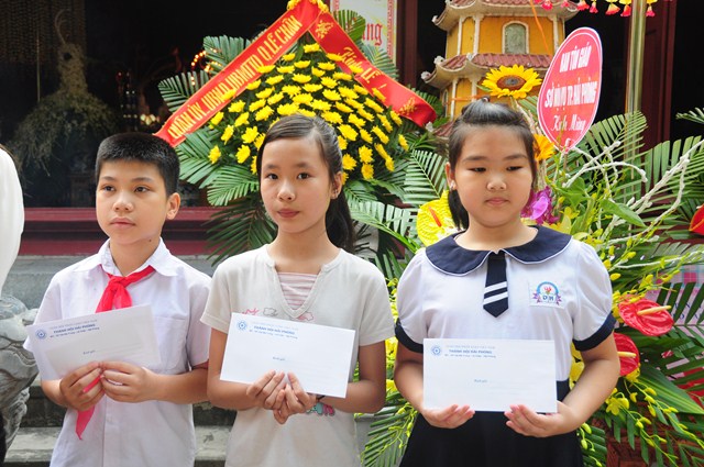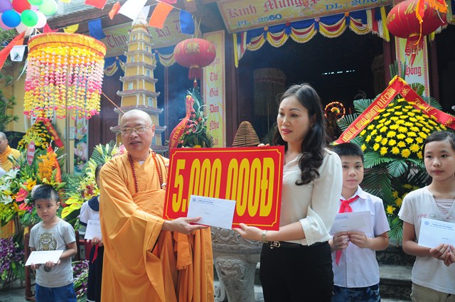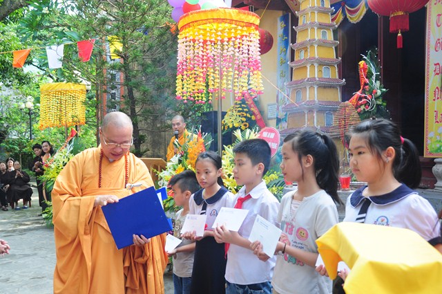 Nhân dịp này, Chư tôn đức Tăng chùa Phổ chiếu và các Phật tử đã trao quà cho một số cháu học sinh đang học tập, sinh hoạt trên địa bàn quận Lê Chân với tổng giá trị số quà từ từ thiện trong đợt này là 5 triệu đồng.