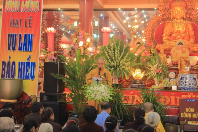 Cũng trong buổi lễ, toàn thể đạo tràng đã được nghe Đại đức Thích Giác Hảo giảng một thời Pháp nói về lịch sử của ngày lễ Vu Lan, cuộc đời của Bồ tát Mục Kiền Liên, đồng thời Đại đức trụ trì cũng đã giải thích cho các phật tử hiểu về ý nghĩa của ngày Rằm tháng 7, ngày xá tội vong. Đó là ngày để nhắc nhở chúng ta phải luôn luôn nghĩ tưởng đến thâm ân của hai đấng sinh thành. Thể hiện sự hiếu kính đối với ông bà, cha mẹ bằng những hành động, những việc làm cụ thể, nhất là lúc cha mẹ còn hiện tiền, noi theo tấm gương hiếu hạnh của đại hiếu Mục Kiền Liên. Đừng để lúc cha mẹ mất đi rồi mới thấy hối tiếc về những việc mình đã làm, đến lúc đó cho dù có hối tiếc đi chăng nữa thì cũng đã quá muộn màng.