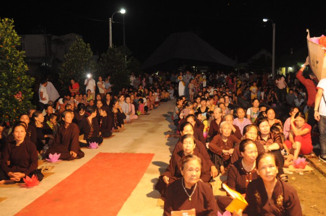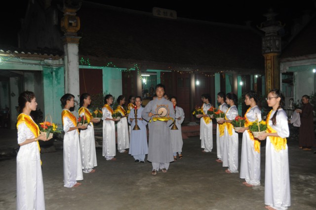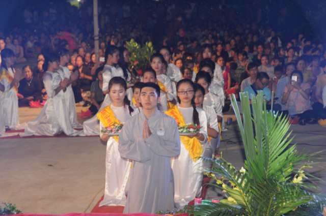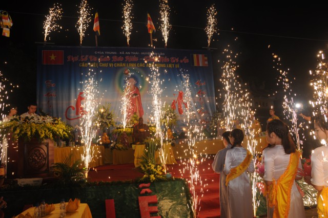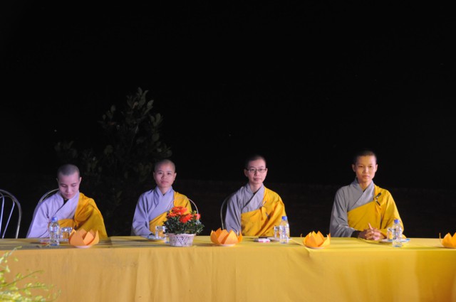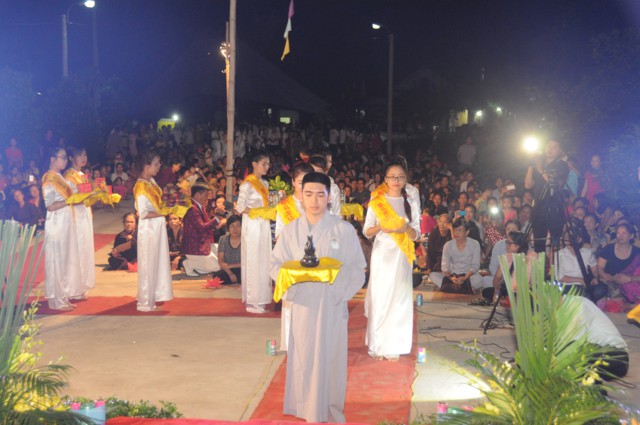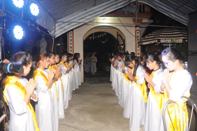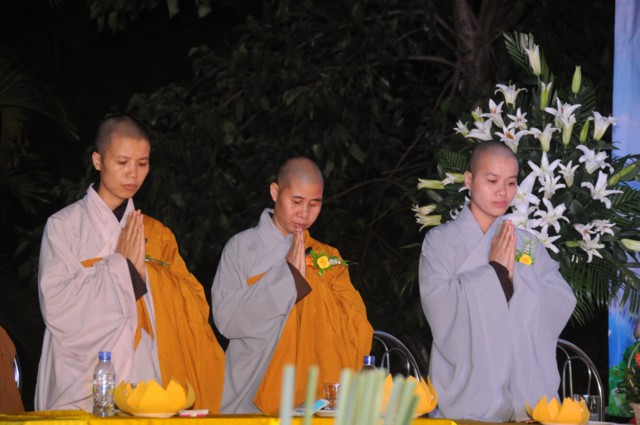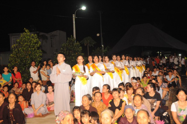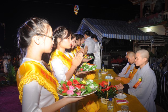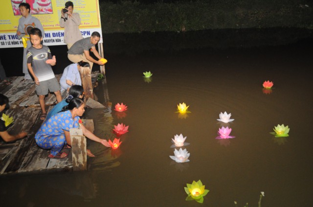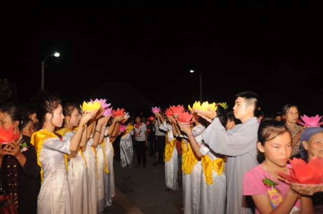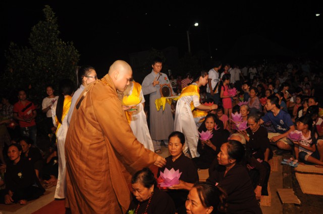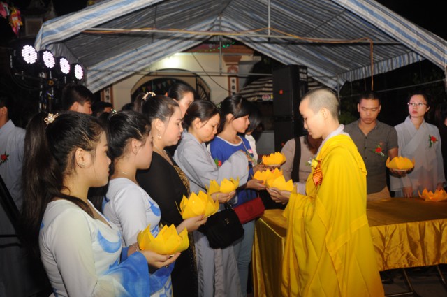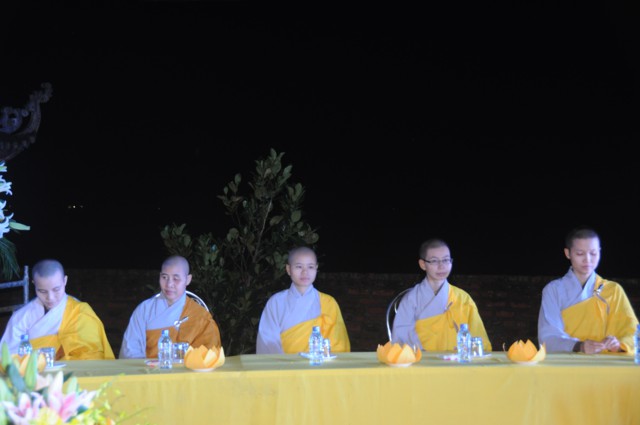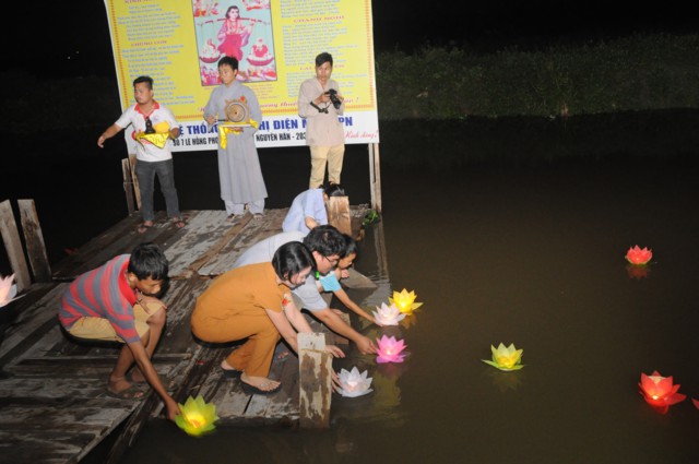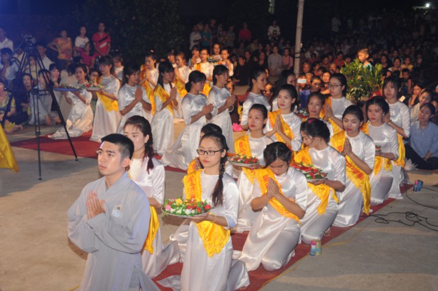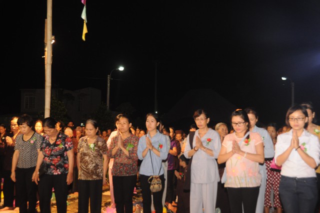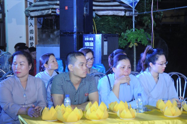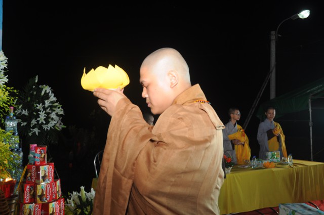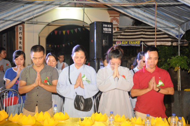 Trước khi kết thúc buổi lễ, Chư tôn đức Tăng Ni cùng toàn thể đạo tràng đã dành 1 phút tưởng niệm tới Chư lịch đại tổ sư, ông bà, cha mẹ tổ tiên, anh hùng liệt sỹ, chiến sỹ trận vong, đồng bào tử nạn và thắp hoa đăng tri ân cha mẹ, tri ân 2 đấng sinh thành, đã nuôi nấng chúng ta trưởng thành đến ngày hôm nay. Đồng thời tri ân các anh hùng liệt sỹ đã hy sinh cho độc lập tự do của Đất Nước.