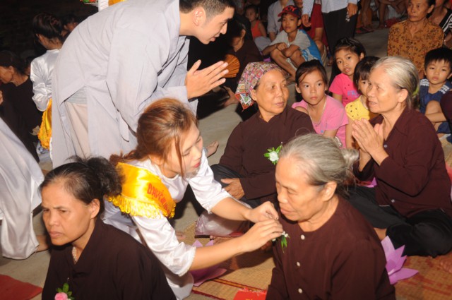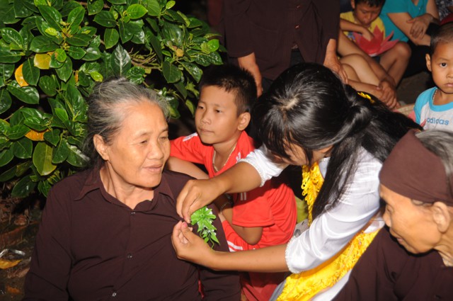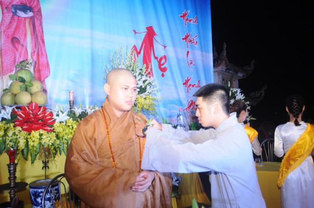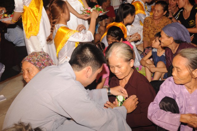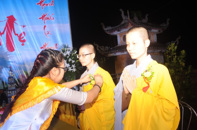 Sau khi kết thúc nghi lễ dâng hương, bạch Phật, thay mặt cho hàng Phật tử tại gia, một Phật tử trẻ đã lên tuyên đọc ý nghĩa Bông Hồng Cài Áo và thực hiện nghi lễ cài hoa hồng cho Chư tôn đức Tăng Ni, quý Phật tử và nhân dân địa phương. Ai còn mẹ sẽ được cài lên ngực áo của mình một bông hồng đỏ thắm và những ai mất mẹ rồi sẽ cài lên ngực áo của mình một bông hoa hồng màu trắng tượng trưng cho sự mất mát đau thương nhất của cuộc đời mình. Nhưng cho dù cài lên ngực áo của mình bông hồng màu nào đi chăng nữa thì cha mẹ vẫn luôn hiện hữu trong trái tim của mỗi chúng ta.