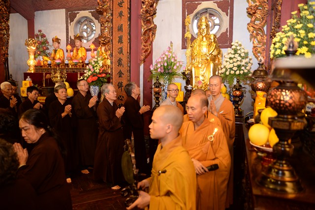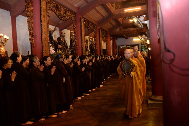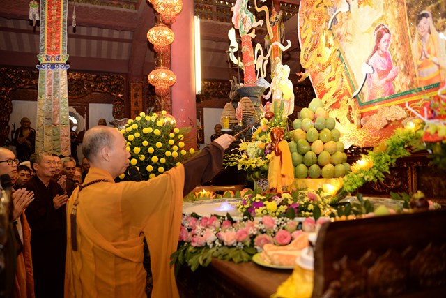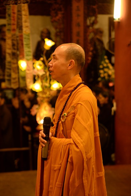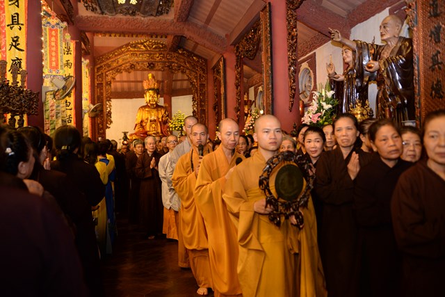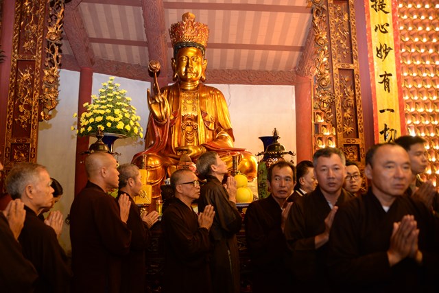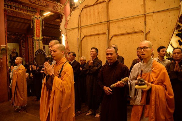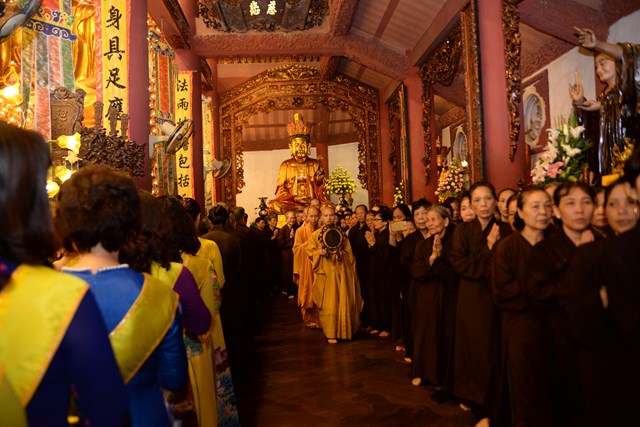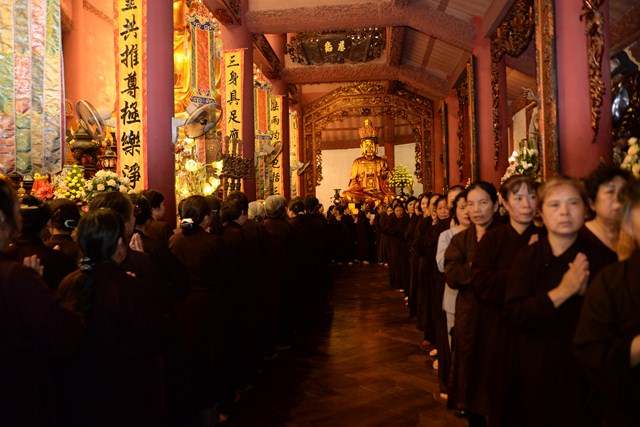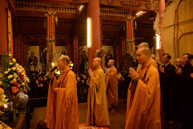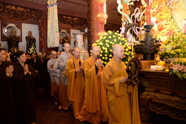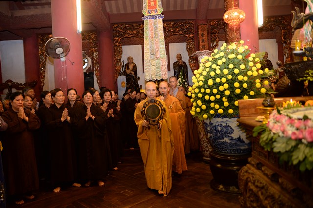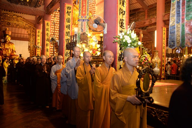 Sau khi chương trình văn nghệ được hoàn mãn, chư tôn đức Tăng trong chốn trụ xứ cùng hàng trăm Phật tử đứng dậy, chắp tay trang nghiêm, thành kính niệm danh hiệu đức Bản Sư Thích Ca Mâu Ni Phật và đi nhiễu quanh tôn tượng của Ngài được đặt tại trung tâm chính điện trong tiếng niệm Phật da diết, trầm hùng, nhất tâm và thành kính nhất, càng làm cho buổi lễ trở nên linh thiêng hơn.