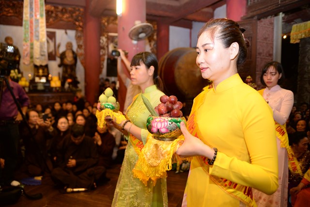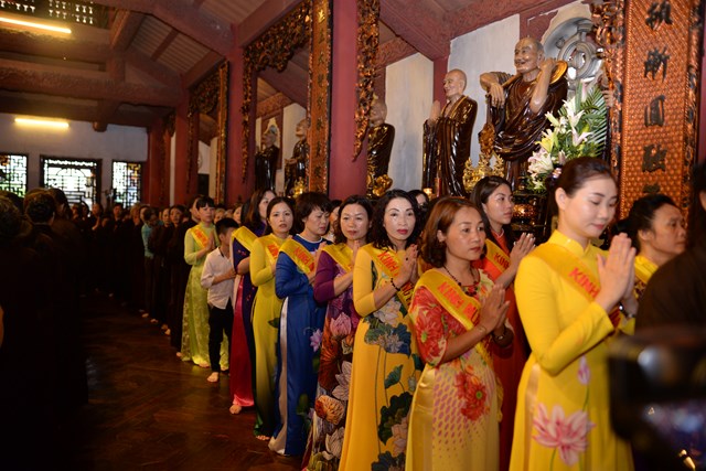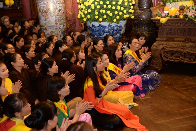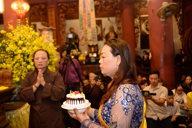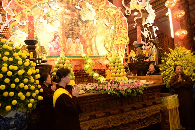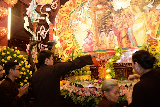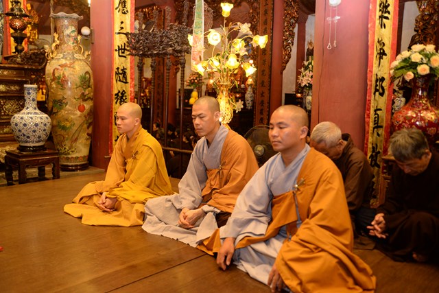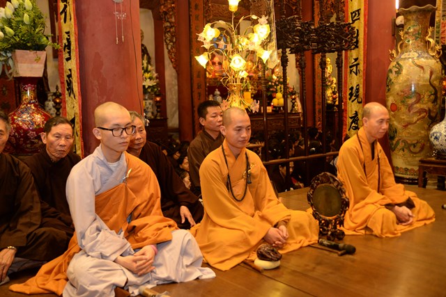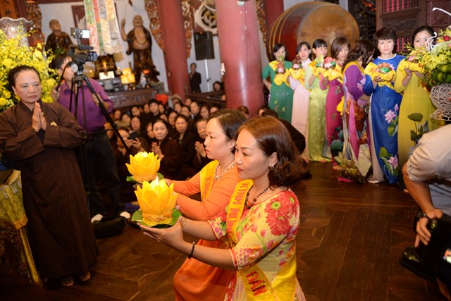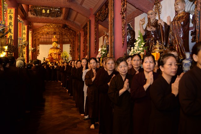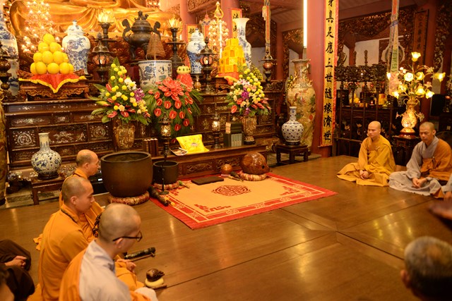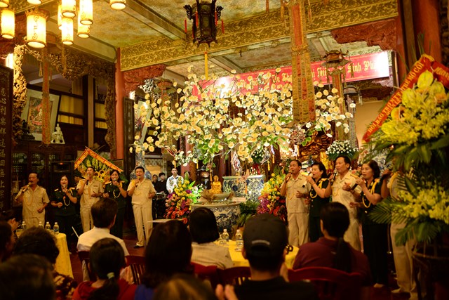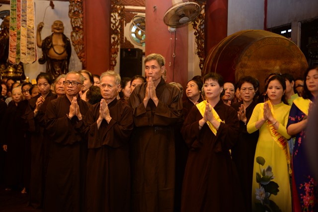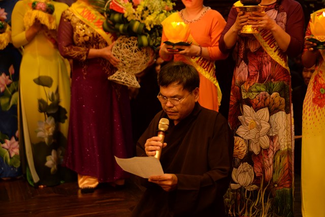 Sau khi chương trình văn nghệ được hoàn mãn, chư tôn đức Tăng trong chốn trụ xứ cùng hàng trăm Phật tử đứng dậy, chắp tay trang nghiêm, thành kính niệm danh hiệu đức Bản Sư Thích Ca Mâu Ni Phật và đi nhiễu quanh tôn tượng của Ngài được đặt tại trung tâm chính điện trong tiếng niệm Phật da diết, trầm hùng, nhất tâm và thành kính nhất, càng làm cho buổi lễ trở nên linh thiêng hơn.