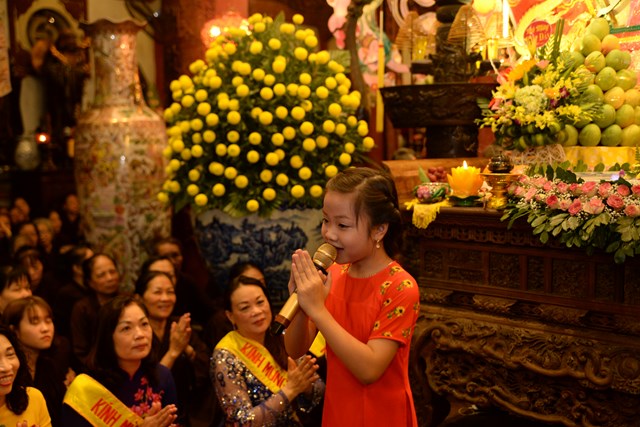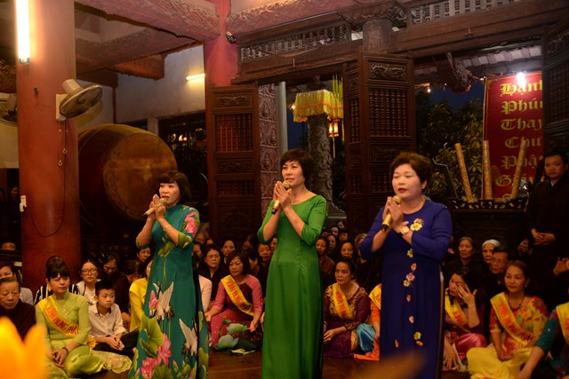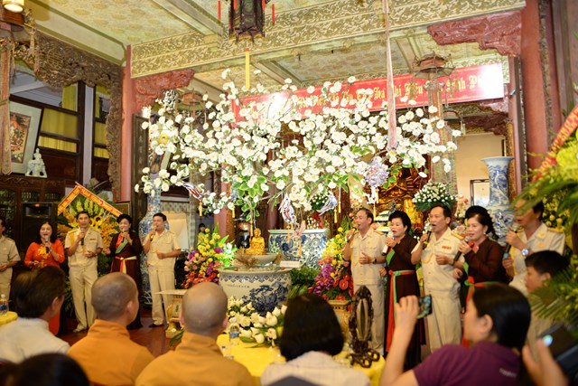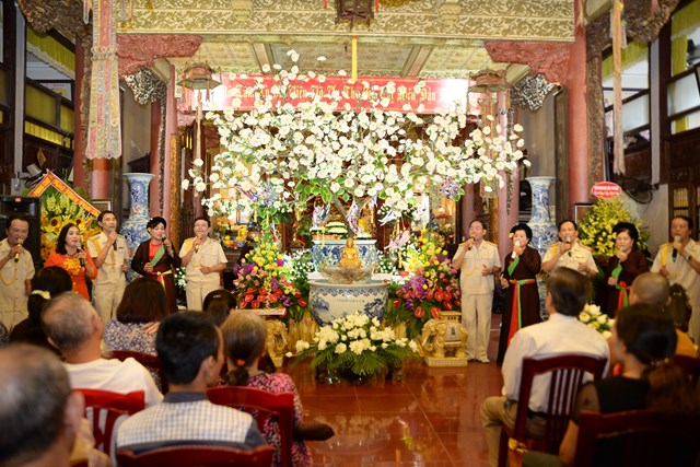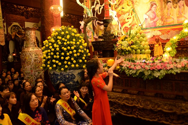 Sau khi khóa lễ chú nguyện được chu viên, hoàn mãn, để thể hiện lòng biết ơn của mình đối với đức Bản Sư Thích Ca Mâu Ni Phật, các Phật tử đạo tràng chùa Đỏ đã tổ chức nghi lễ dâng lục cúng dàng: Dâng  hoa, hương, đăng, trà, quả, thực và các vật phẩm khác để cúng dàng lên Đức Bản Sư Thích Ca Mâu Ni Phật nhân kỷ niệm ngày sinh của Ngài. Đồng thời, các Phật tử đạo tràng Tịnh Độ chùa Linh Độ, cùng với sự xuất hiện của ca nương kỷ lục gia nhỏ tuổi nhất Việt Nam: Bé Tú Thanh đã dâng lời ca tiếng hát đón mừng sự kiện Đức từ phụ Thích Ca Mâu Ni ra đời với các ca khúc ca ngợi sự kiện hy hữu, trọng đại này, ca ngợi công hạnh, ca ngợi tấm lòng từ bi, hỷ xả, luôn thương yêu chúng sinh rất mực của Ngài.
