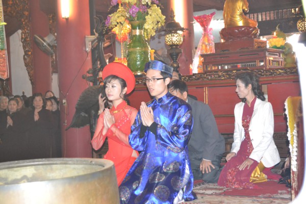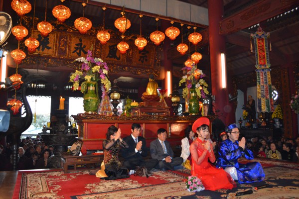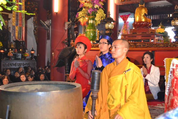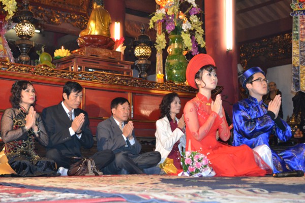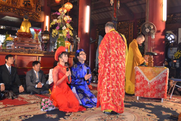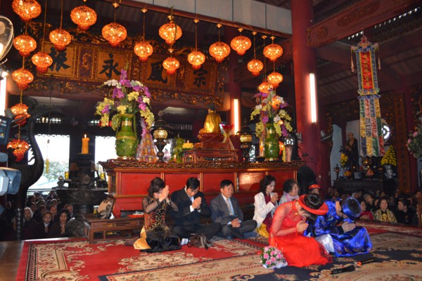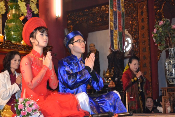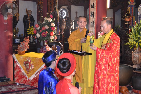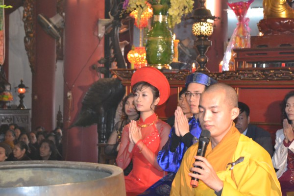 Dưới sự chứng minh của Đại Đức Thích Trường Xuân và Chư tôn đức Tăng trong chốn trụ xứ chùa Linh Độ cùng hơn 500 Phật tử tham dự khóa tu 1 ngày an lạc nhân ngày khánh đản của đức Phật A Di Đà, buổi lễ hằng thuận cho đôi bạn trẻ đã được diễn ra trong không khí trang nghiêm, thanh tịnh, ấm tình đạo vị.