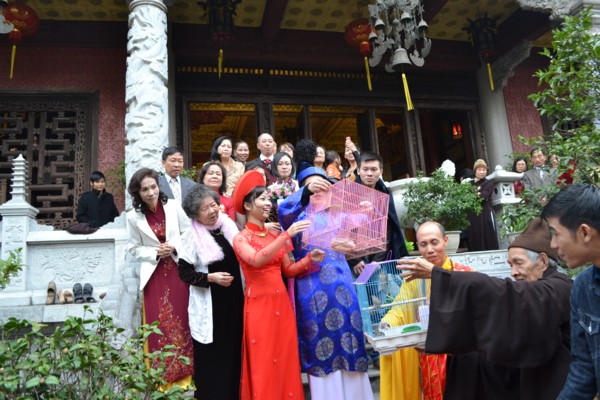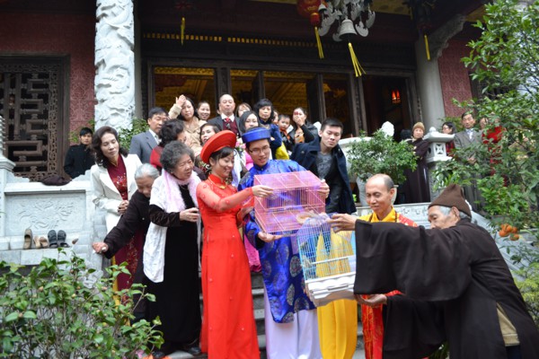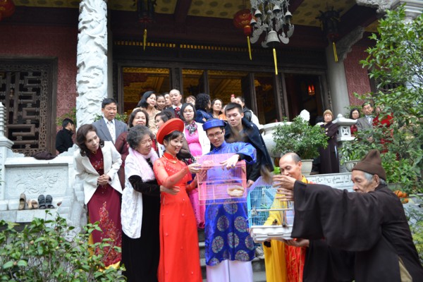 Trước khi kết thúc buổi lễ Hằng thuận, ĐĐ. Thích Trường Xuân đã làm lễ phóng sinh và đôi bạn trẻ cùng hai bên gia đình Tân Lang, Tân Nương đã cùng tham dự buổi lễ đầy ý nghĩa nhân ngày vui này.
