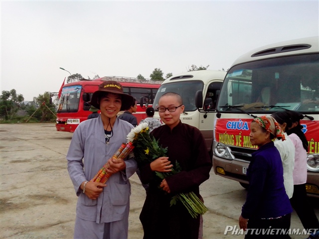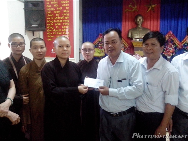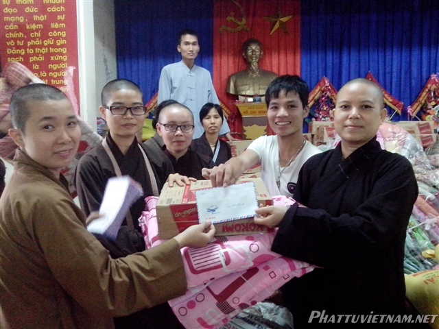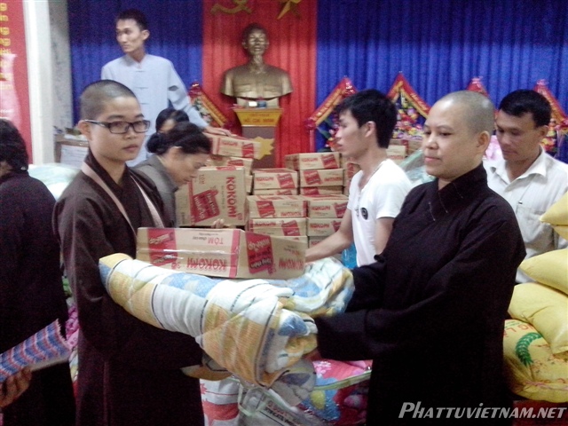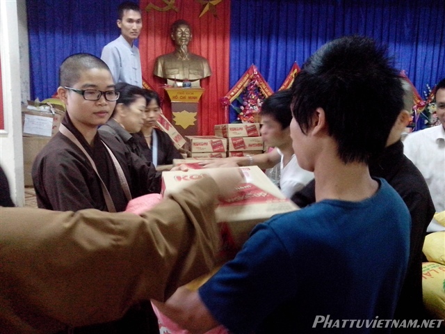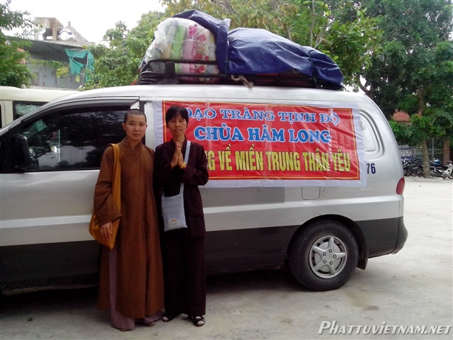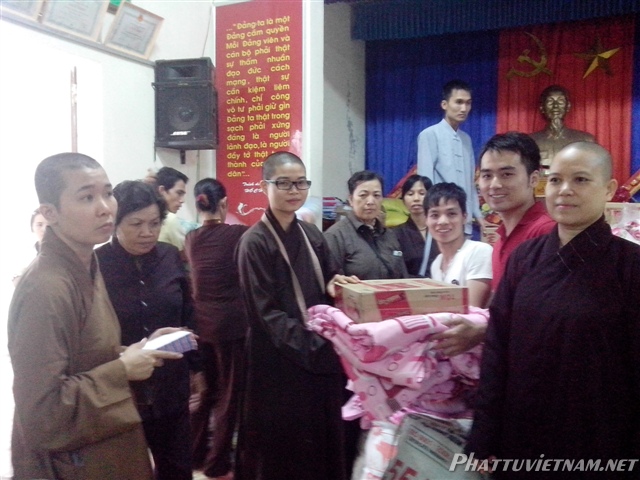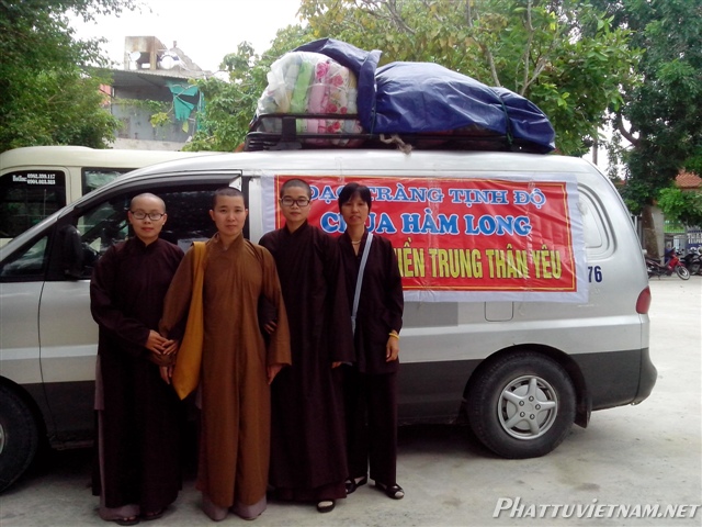 Vừa qua, ngày 21,22/10/2013, ni sư TN. Huệ Vân, trụ trì chùa Hàm Long, thị trấn Núi Đèo, huyện Thuỷ Nguyên, TP.Hải Phòng, đã hướng dẫn đoàn Phật tử đến chia sẻ tại UNBD xã Quỳnh Vinh, huyện Quỳnh Lưu, tỉnh Nghệ An. Theo đó, đoàn tặng 100 phần quà, mỗi phần gồm 1 thùng mì gói, 10 kg gạo, 1 cái chăn, áo quần, 1 phong bì tiền mặt 100.000 đồng.Tổng trị giá quà tặng là 50 triệu đồng.
