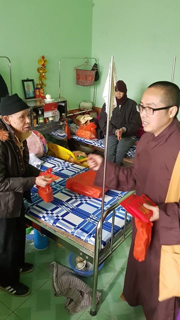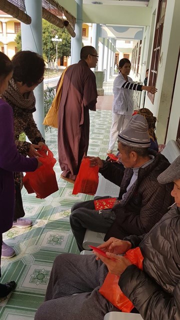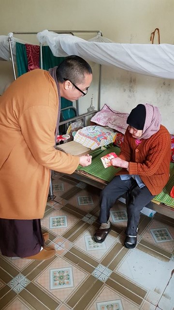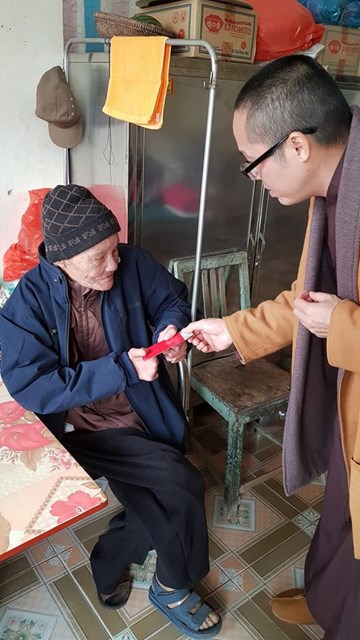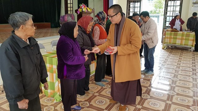 Ngay từ những ngày trung tuần của tháng chạp năm Đinh Dậu, Đại đức Thích Giác Hiệu đã cùng các Phật tử, các nhà hảo tâm, các mạnh thường quân đến tận nơi trao quà cho các gia đình có hoàn cảnh khó khăn, các đối tượng chính sách, người già neo đơn tại trung tâm bảo trợ xã hội, trẻ em tàn tật, hoc sinh nghèo vượt khó với tổng số tiền khoảng  gần 100 triệu đồng, mỗi phần quà bao gồm bánh chưng, bánh kẹo, dầu ăn, mứt tết… và một phong bì tiền mặt.