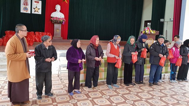 Tại mỗi nơi trao quà, Đại đức Thích Giác Hiệu đã gửi lời động viên thăm hỏi, chia sẻ, chúc tết đến các đối tượng chính sách, chúc bà con đón một cái tết thật đầm ấm hạnh phúc. Những món quà này tuy nhỏ, nhưng chứa đựng trong đó rất nhiều tình cảm của các tổ chức xã hội, các mạnh thường quân, cũng như của Chư tăng, Phật tử chùa Hang đối với bà con, giúp bà con vơi bớt phần nào những khó khăn trong cuộc sống trên tinh thần từ bi, cứu khổ, ban vui và thực hiện theo đúng phương châm của Giáo hội đã đề ra: “ Phật giáo luôn đồng hành cùng Dân tộc.”